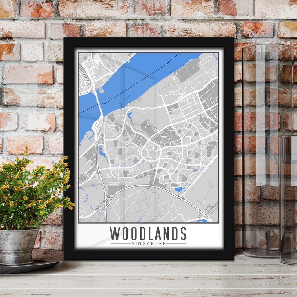 Singapore City Woodlands Map Modern Art Decor Poster