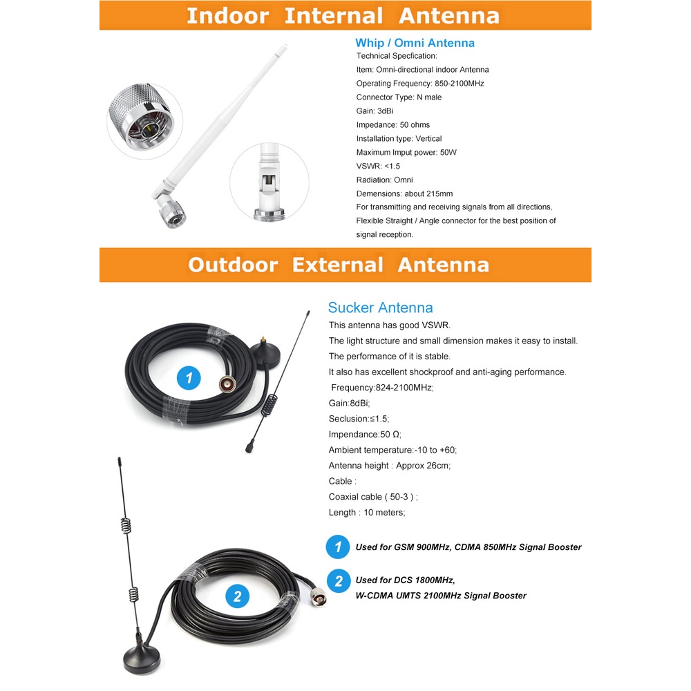 Single Band 3/5/1/8 Mobile Phone 2G 3G 4G LTE Signal Booster DCS 1800MHz CDMA 850MHz GSM 900MHz UMTS W-CDMA 2100MHz Cellphone Repeater Network Amplifier