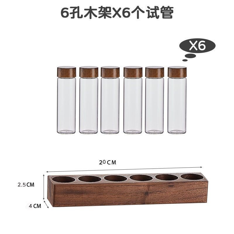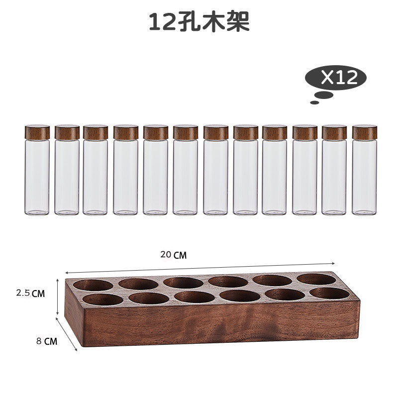Single Dose Coffee Bean Storage Tubes Coffee Bean Cellar Dosing Glass Vials With Lids (2 Oz) Wooden Display Stand