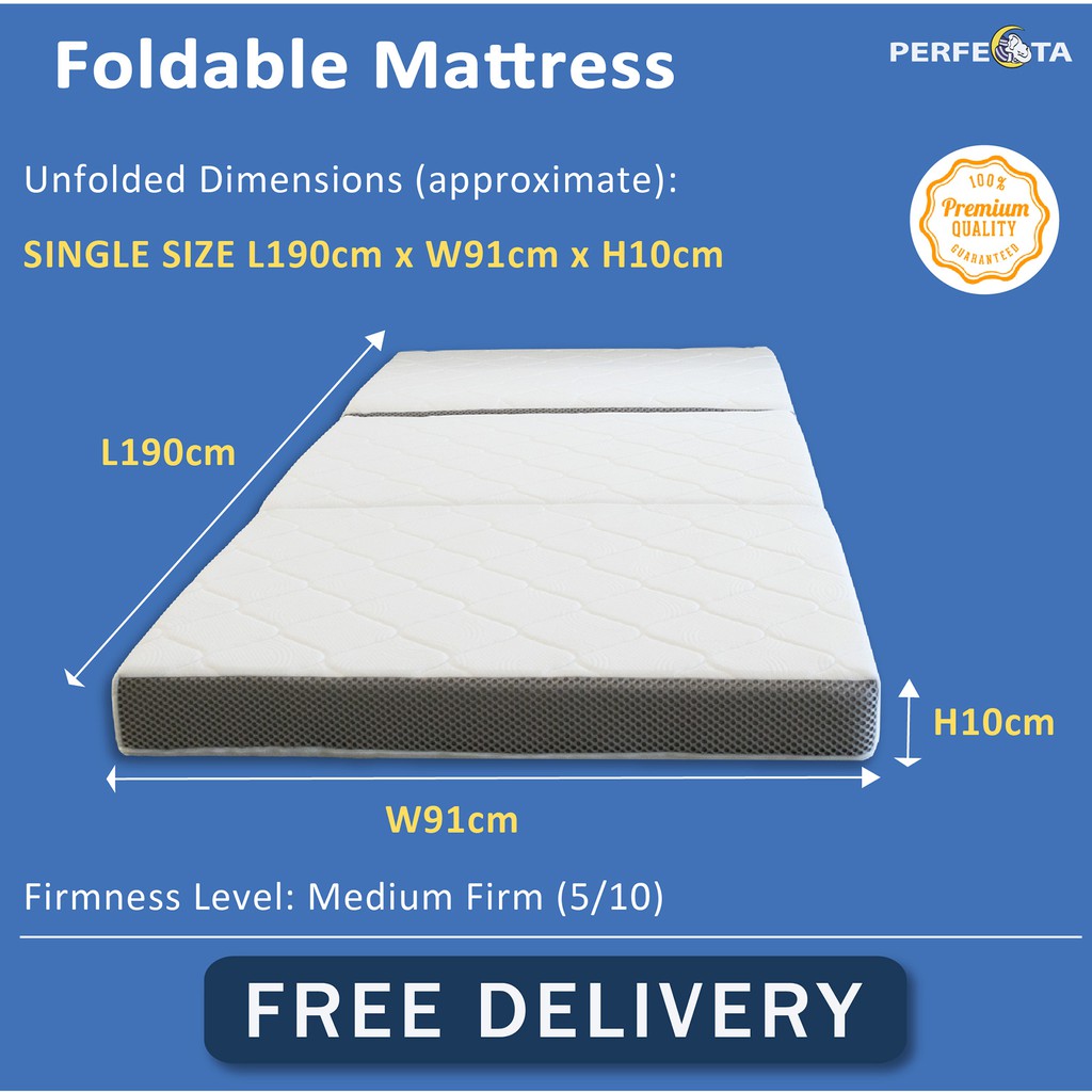 Single size Perfecta Foldable Foam Mattress Premium Knitted Cover Fabric