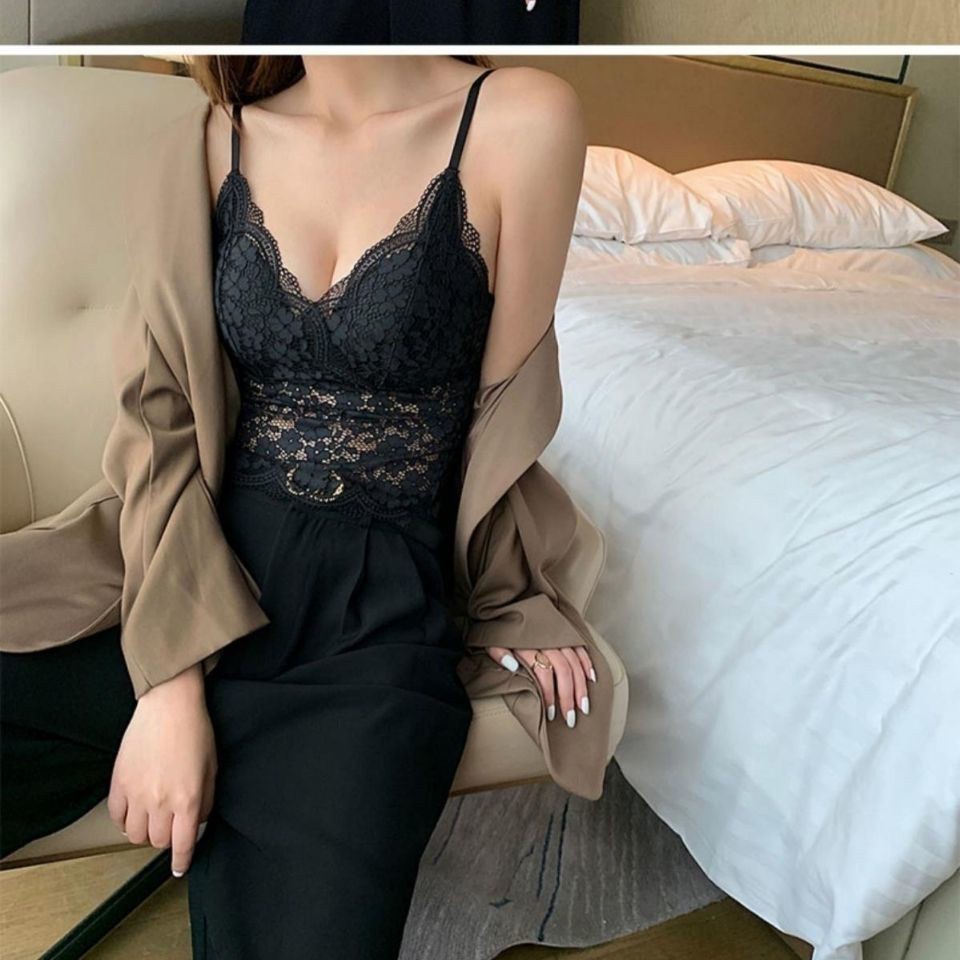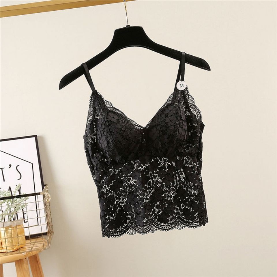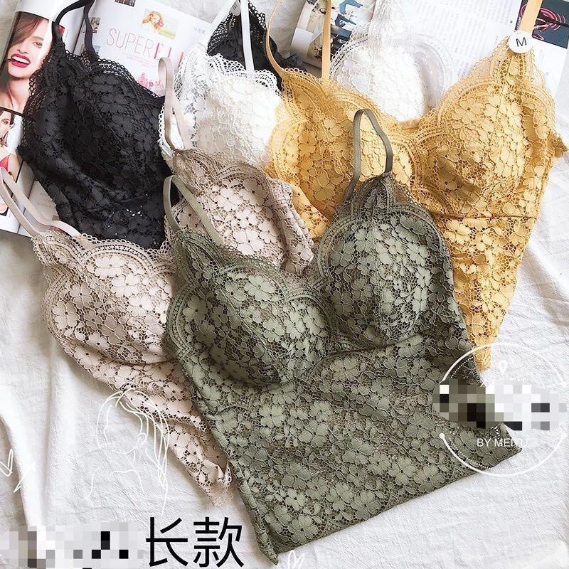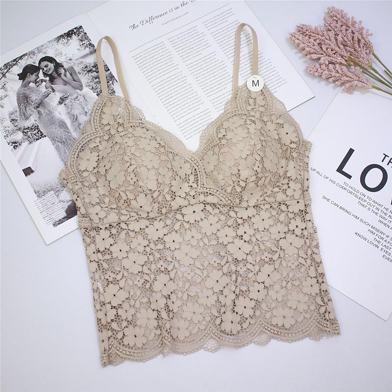 Singlet women plus size lace sexy bra lace camisole women's long beautiful back wrapped chest conjoined detachable chest pad bra thin shoulder strap adjustable camisole strapless women