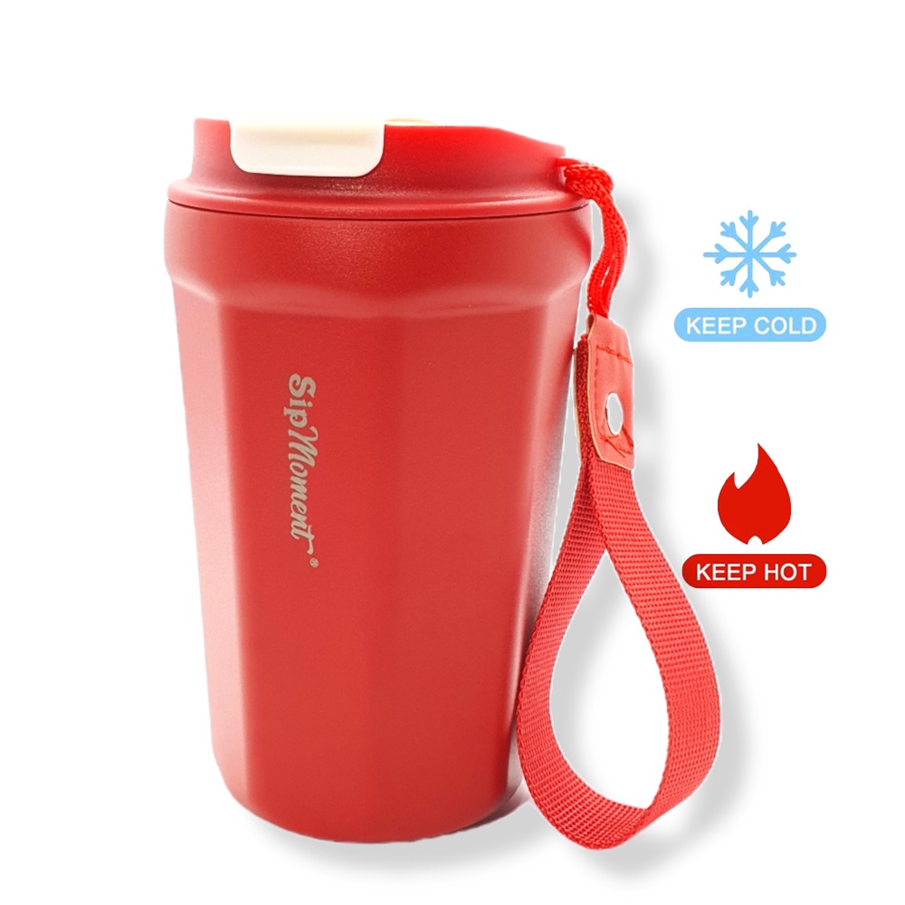 Sip Moment 12oz or 350 ml Stainless Steel Double Wall Vacuum Insulated Coffee Tumbler With Lid & Strap
