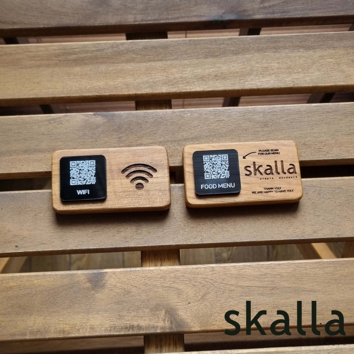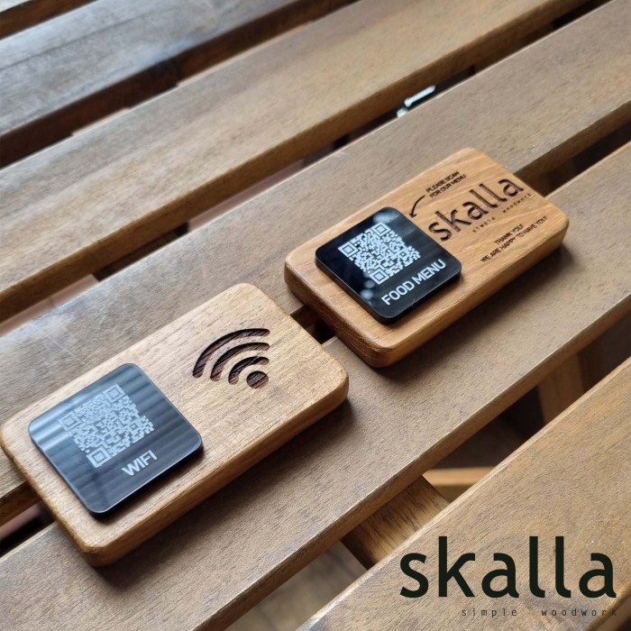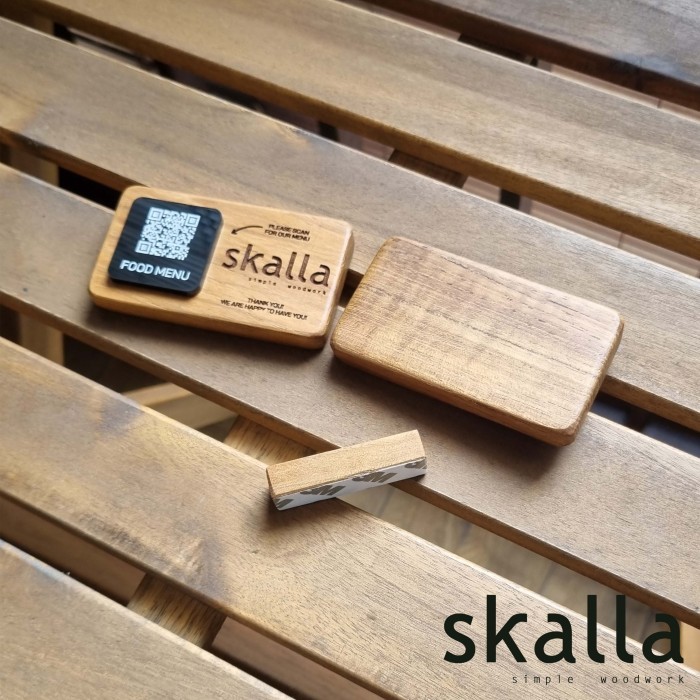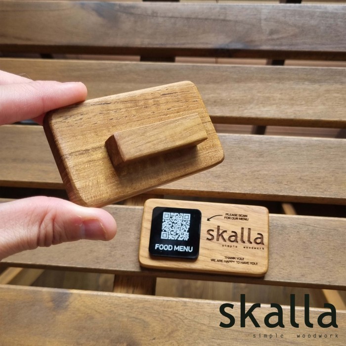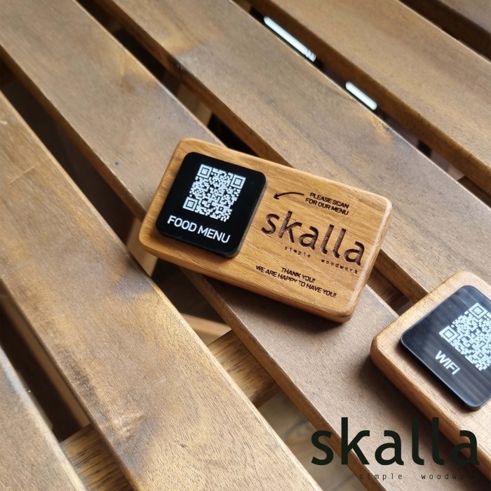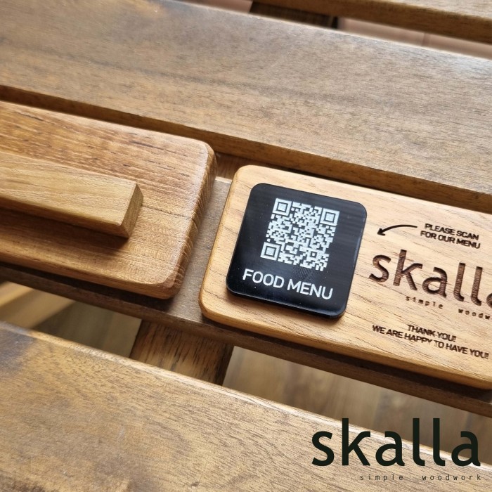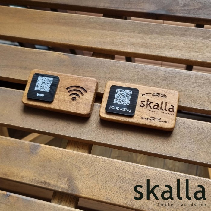 Skalla Wooden QR code stand sign menu wifi wood restaurant cafe hotel barcode signage custom table kyltti