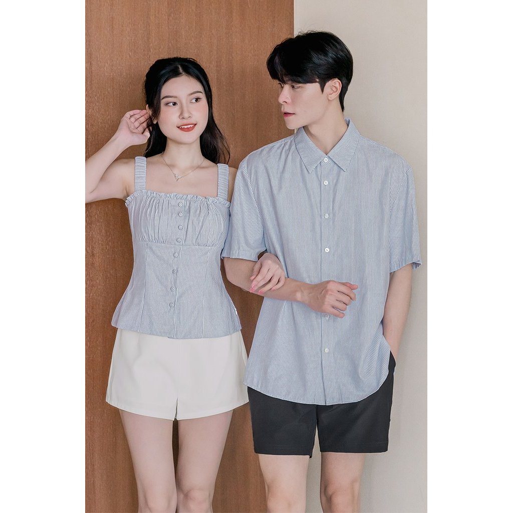 Dear Lyla Freda Padded Ruched Strap Top (Blue Stripes)
