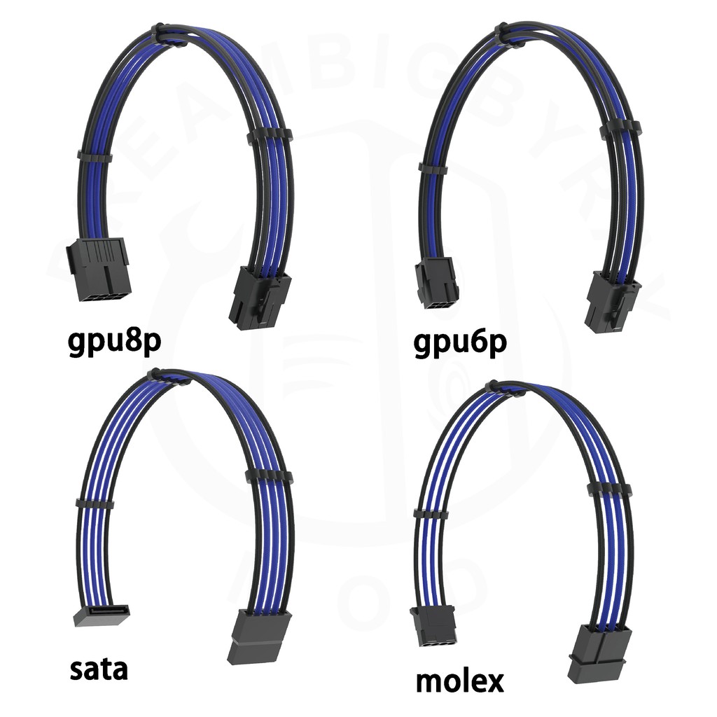 Sleeved 24 Pin ATX Male to 24 Pin PSU Female PC Power Extension Cable blue black
