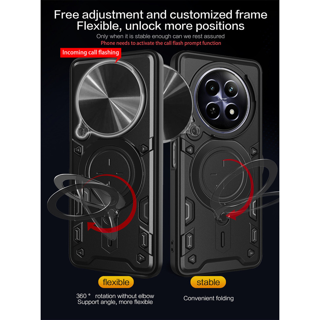 Slide Camera Protect Casing for Realme 13 12 Pro + Plus Realme12 X Realmi 12+ 12X RMX3840 RMX3867 5G Phone Case Armor Ring Bracket Stand Anti Fall Soft TPU Hard PC Shockproof Cover