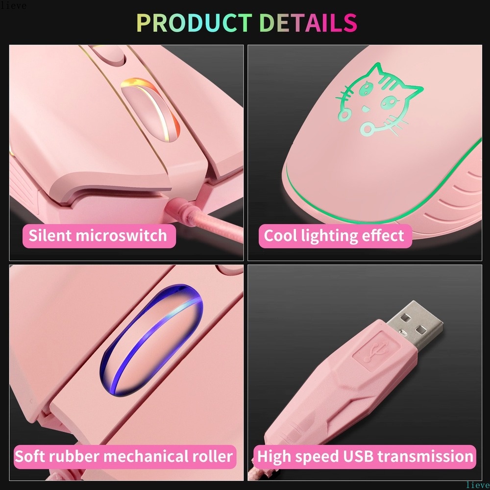 Slient RGB Colorful Breathing Lights Mute Wired USB Gaming Mouse Computer Mice 6-Button Ergonomic for PC Laptops Notebook Desktop Gamers Mice Cat Pattern Pink Mute Mouse