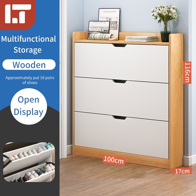 Slim type shoes cabinet wooden shoe rack storage modern style large capacity multi-layer shoe rack wardrobe shoe rack