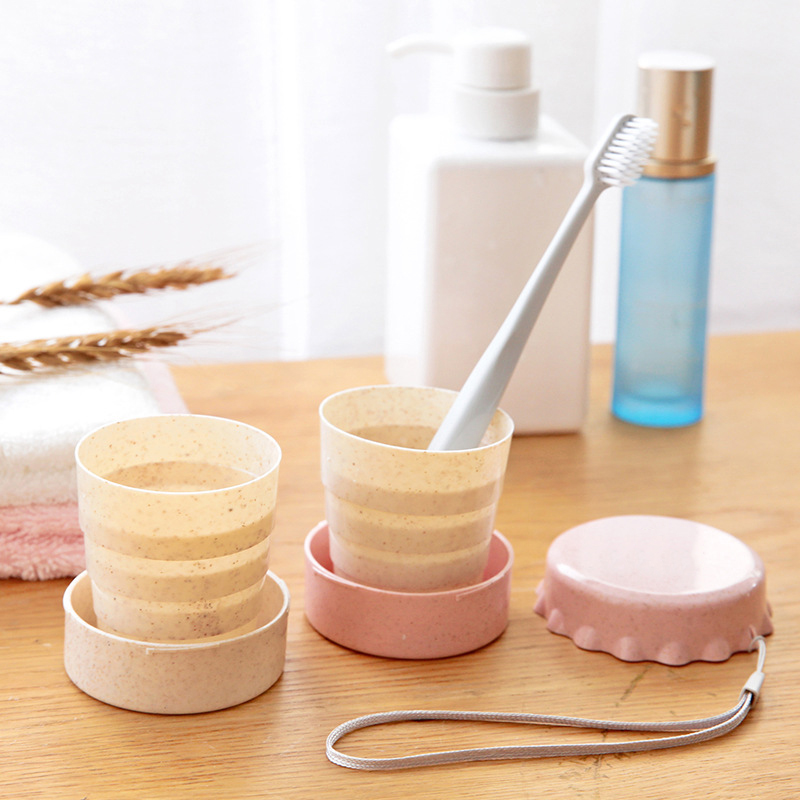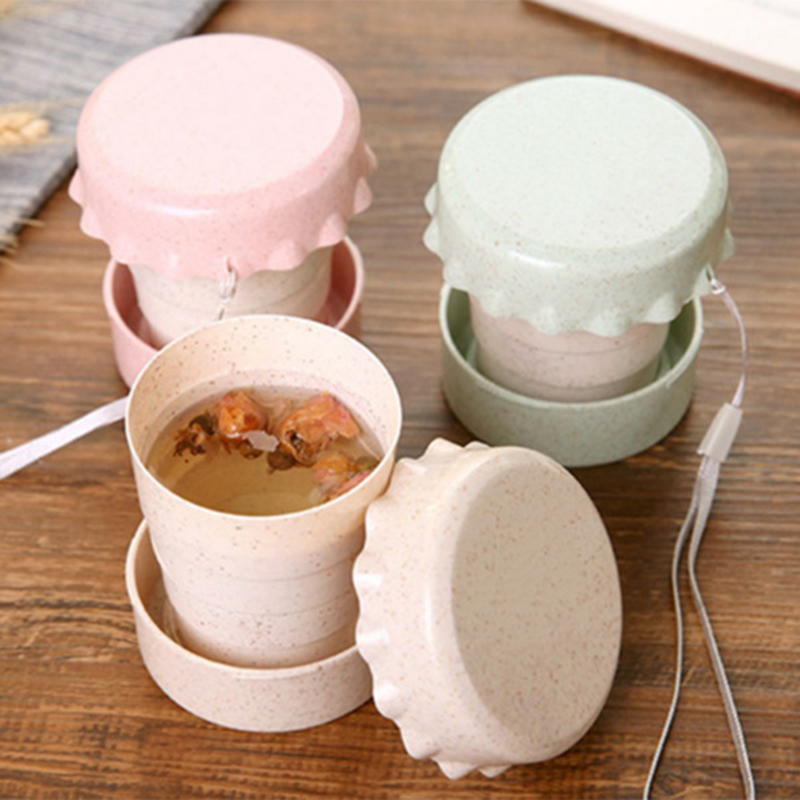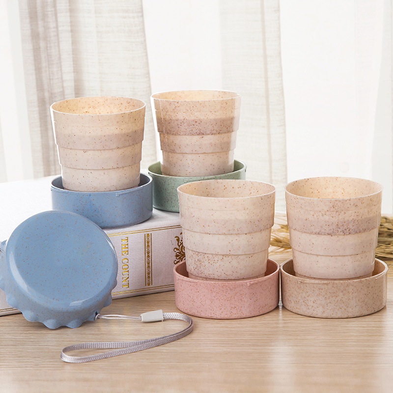 Portable Straw Wheat Plastic Telescopic Drinking Collapsible Folding Cup Travel Camping Convenient Easy To Carry Travel Bottle