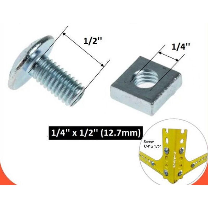 Slotted Angle Bar Screw Bolts and Nuts / Skru Rak Besi Lubang Roofing Bolt and Nut 1/4'' x 1/2''