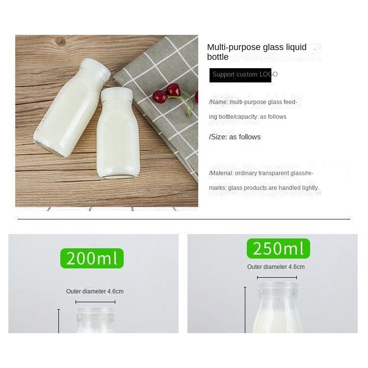 Small Bottle Fresh Milk Glass Bottle Milk Bottle Yogurt Cup Soybean Milk Fresh Delivery Bottle with Lid High Temperature Resistance Dedicated to Milk Bars