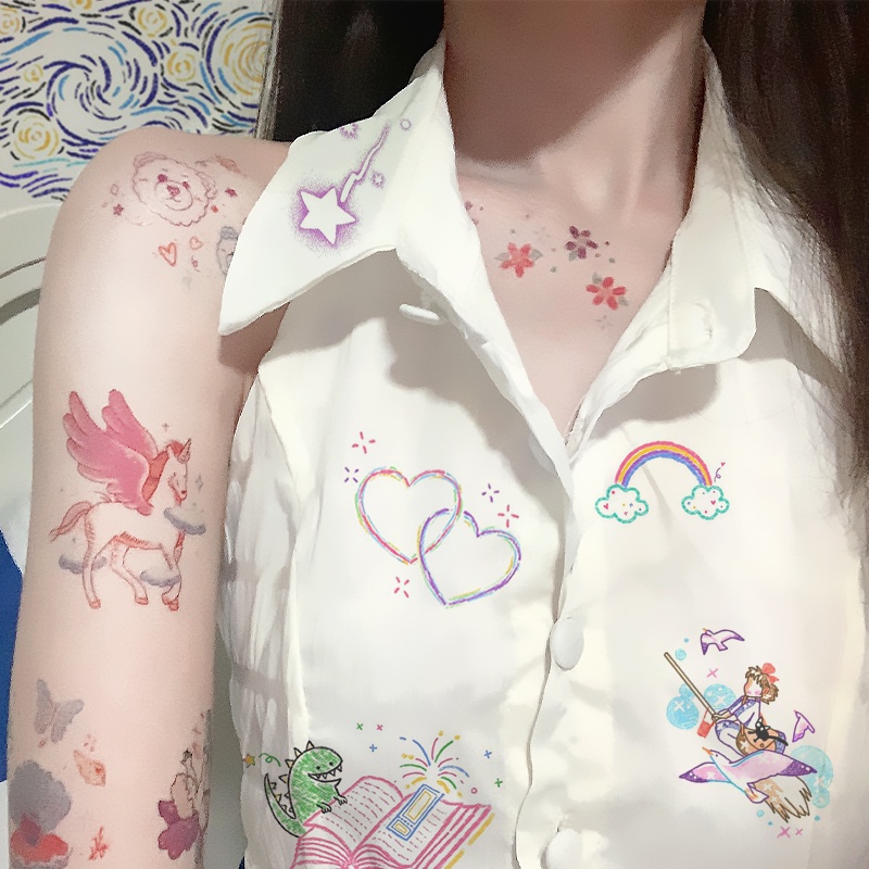 Small Pattern Cute Cartoon Butterfly Small Fresh Tattoo Sticker Waterproof Female Long Lasting Simulation Temporary Tattoo