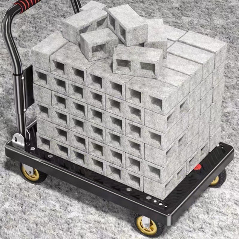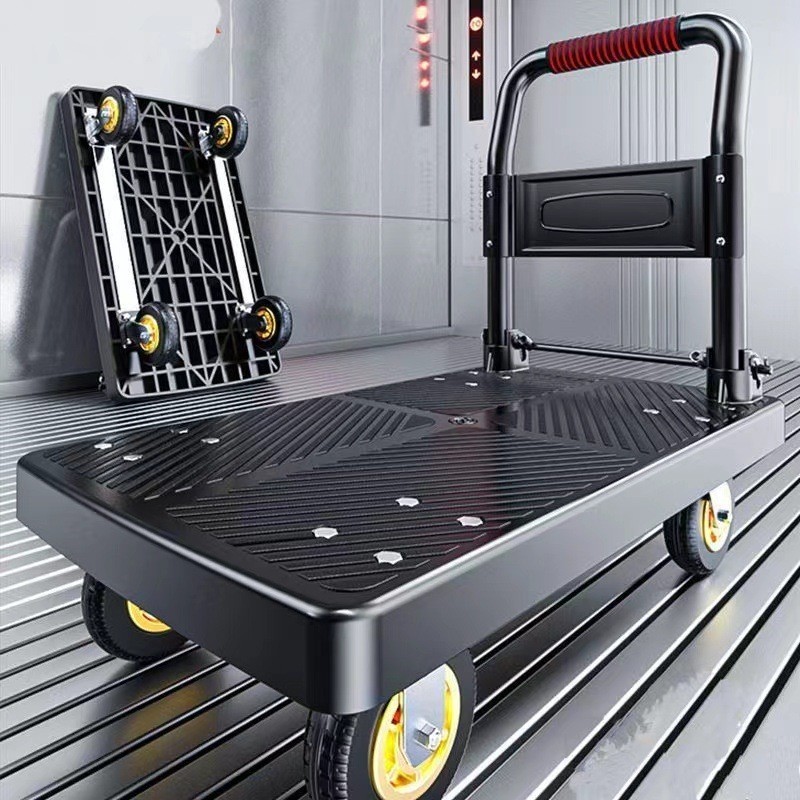 Small Utility Cart Four-Wheel Platform Cart Luggage Moving Cart Foldable Hand Truck Courier Wagon Trolley Heavy Duty