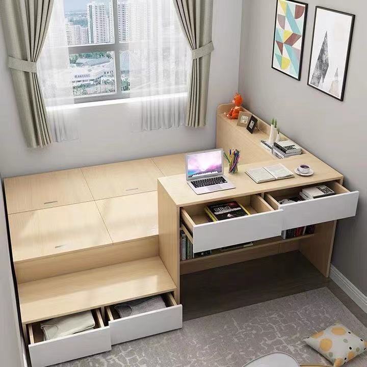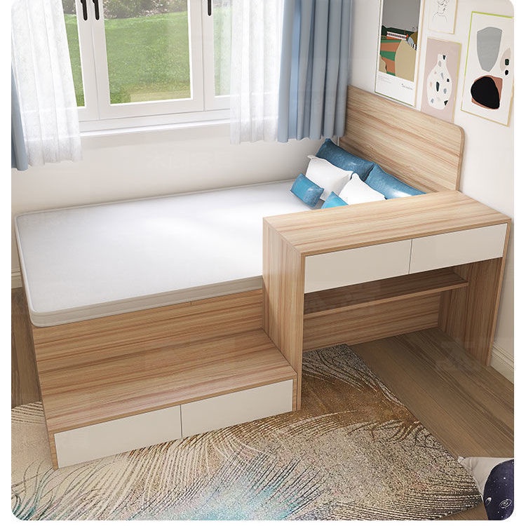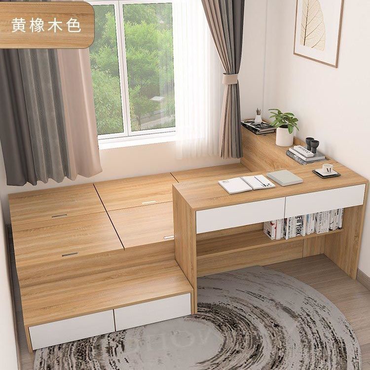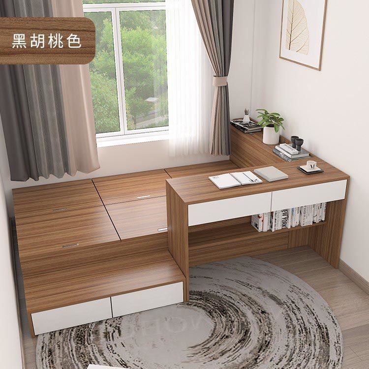 Small family bedroom tatami bed desk integrated multi-functional storage panel children's bed bookshelf combination can be customized supplementary order needed
