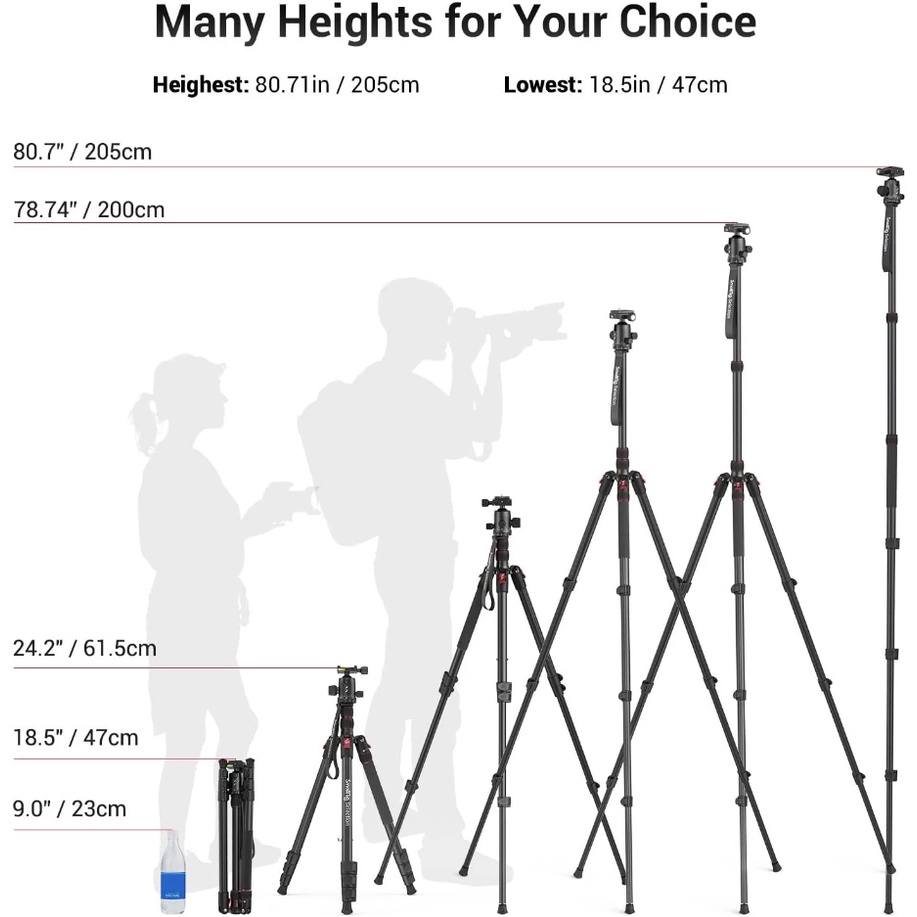 SmallRig Selection Lightweight 78" Aluminum Camera Tripod Monopod, Foldable DSLR Tripod for Travel, w/ 360 Degree Ball Head 3474