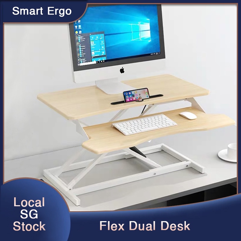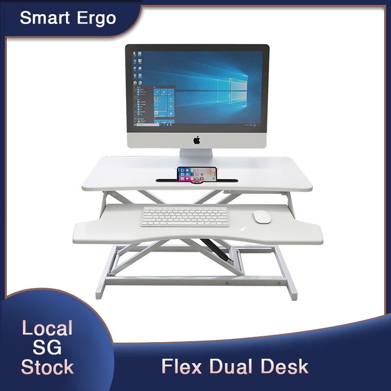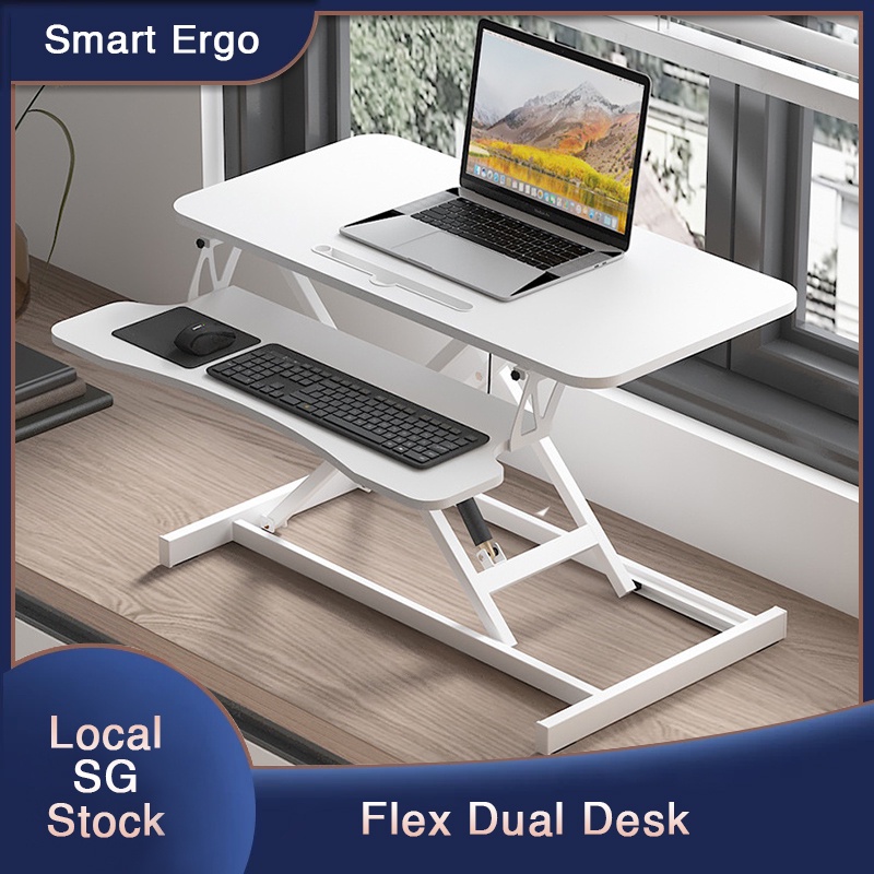 Smart Ergo Ergonomic Height Adjustable Desk Converter | Standing Desk hydraulic Lift ( Flex Dual )