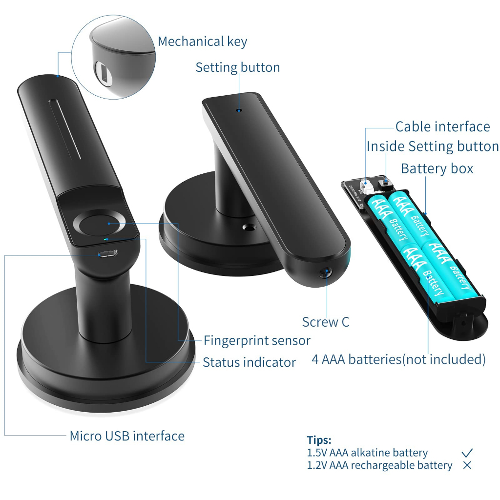 Smart Fingerprint Door Lock,Keyless Entry Door Lock with Handle,Biometric Door Lock,Room Door Lock for Home Office
