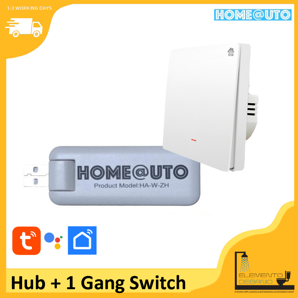 Smart Home Homeauto Zigbee WIFI Hub + HomeAuto Single Rocker Wall Switch Smart 1 Gang (White)