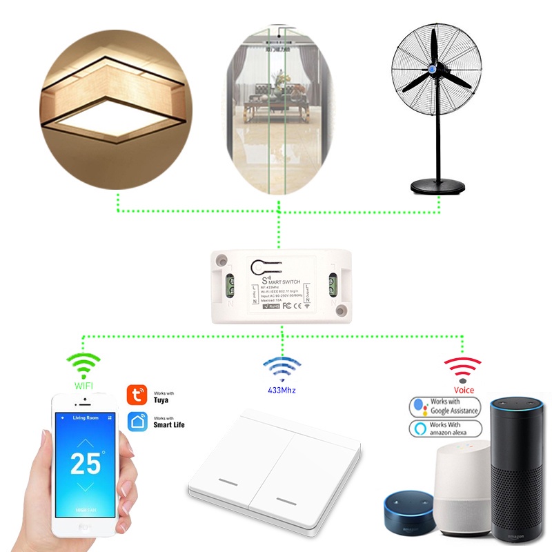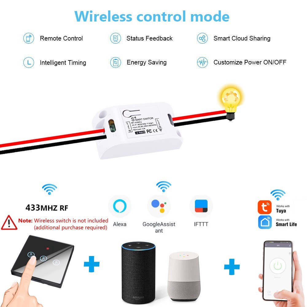 Smart Life APP WiFi + RF 433Mhz Relay Switch Module with Timer Smart Light Switch Remote Wireless Relay Receiver