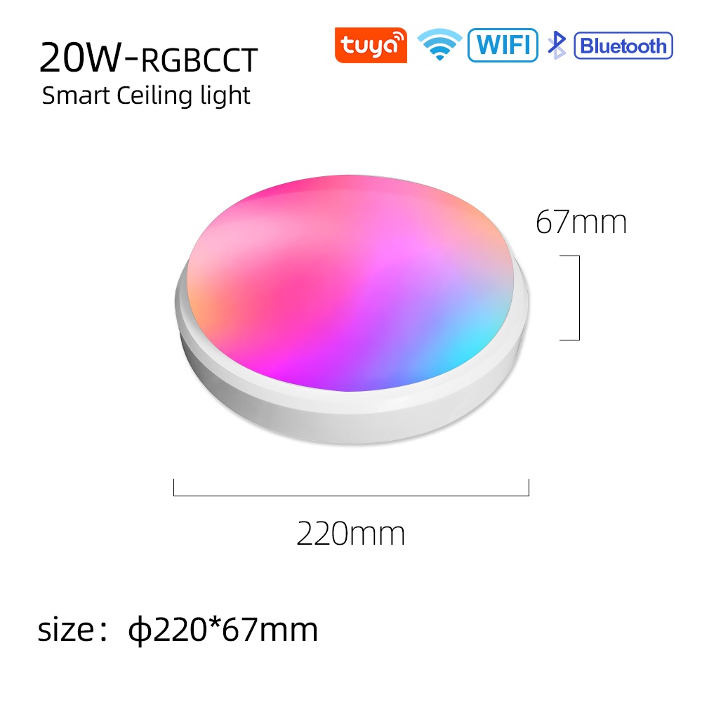 Smart TUYA WiFi + Bluetooth Round Led Ceiling lights 20W RGB Color changing Surface mounted ceiling lamp