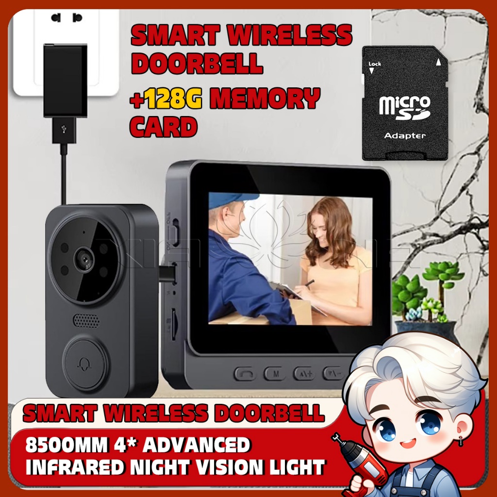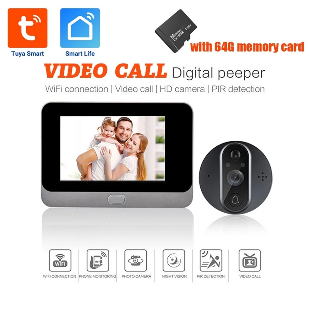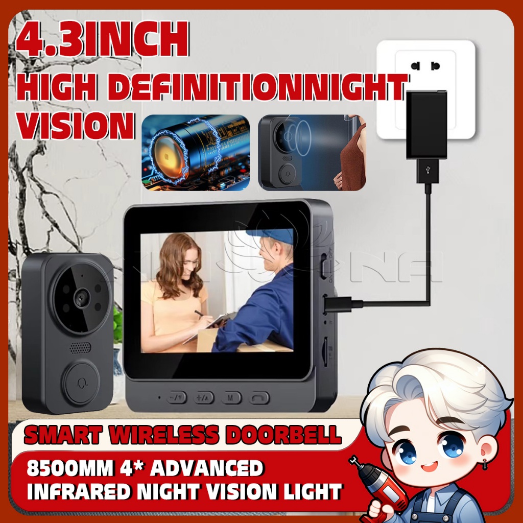 Smart Wireless Doorbell Door Viewer 1080HD Video Doorbell with Peephole Camera 4.3inch Camera Intercom Night Vision