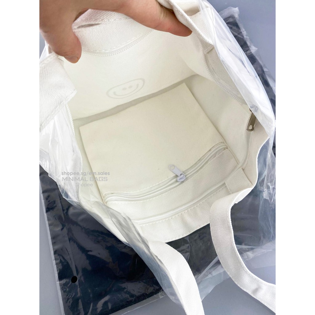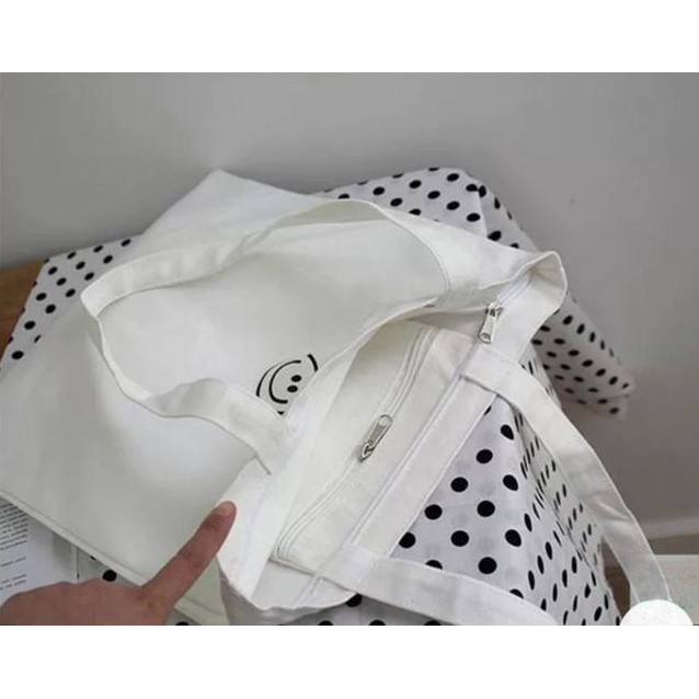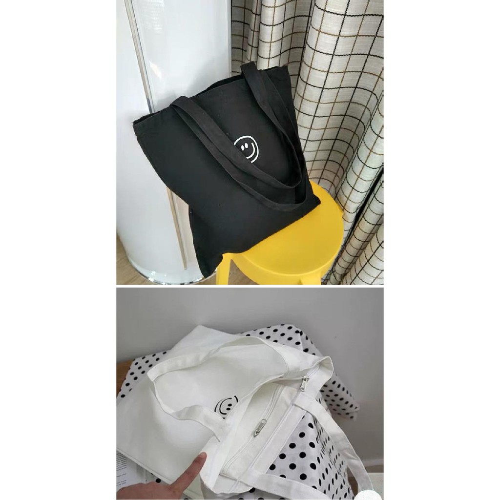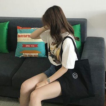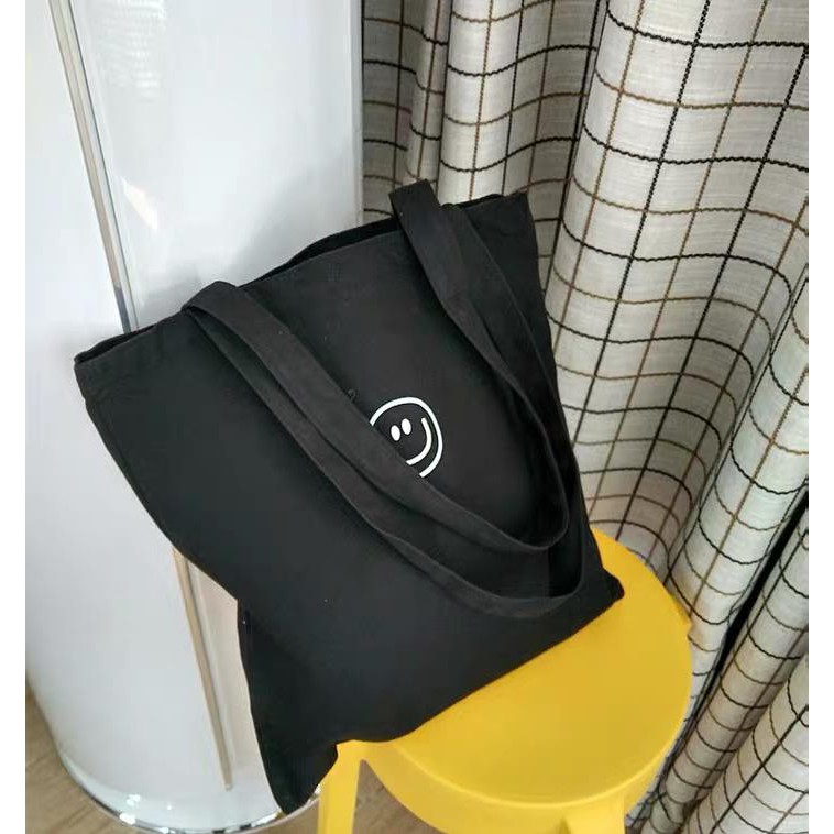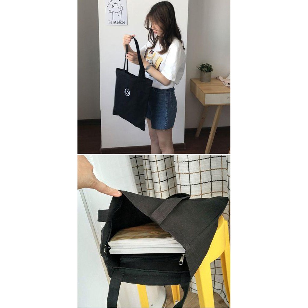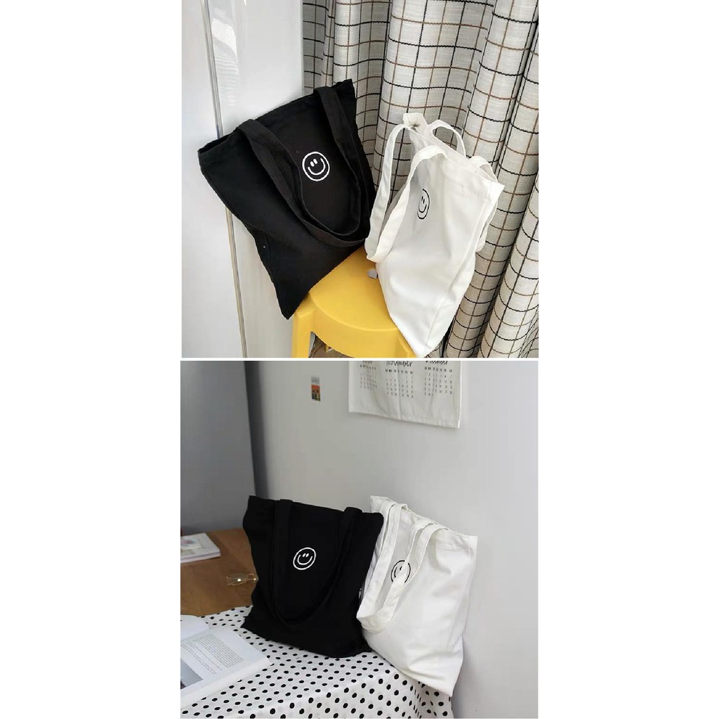 Smiley Face Print Canvas Tote Bag A4 Laptop Bag Plain Basic