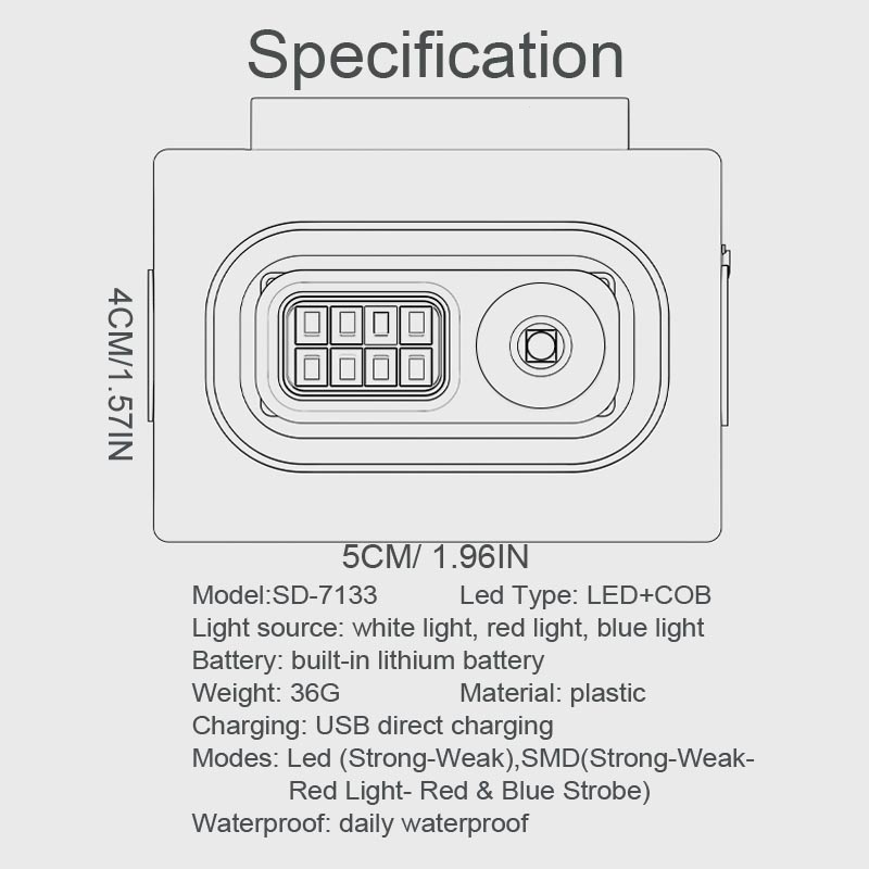 Smiling Shark SD7133 Running Head Lamp Mini Super Bright Headlight COB Magnet Headlamp Type-C Rechargeable Waterproof Outdoor Working Fishing Emergency Lighting