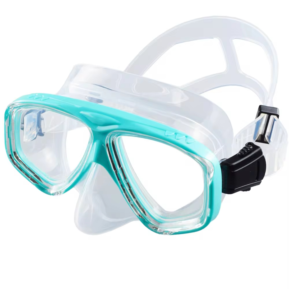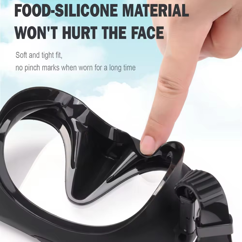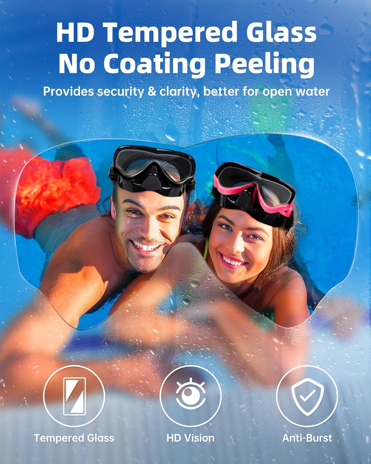 Snorkel Mask Swimming Goggles Scuba Diving Silicone Skirt Tempered Glass Len Wide View Training With Nose Cover Adjustable Strap
