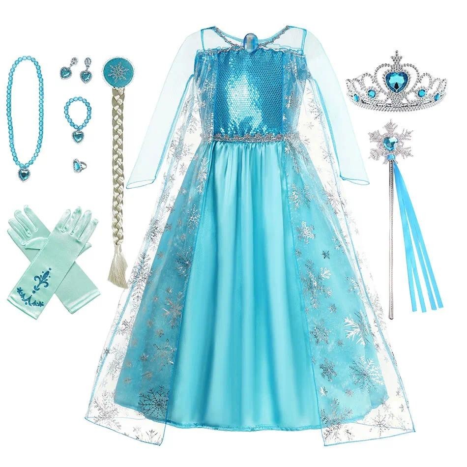 Snow Queen Elsa Dress Girls Cartoon Movie Frozen Princess Cosplay Costume Kids Fairy Elsa Clothing Party Vestidos 2-10 Yr Comic Con Elsa Frock