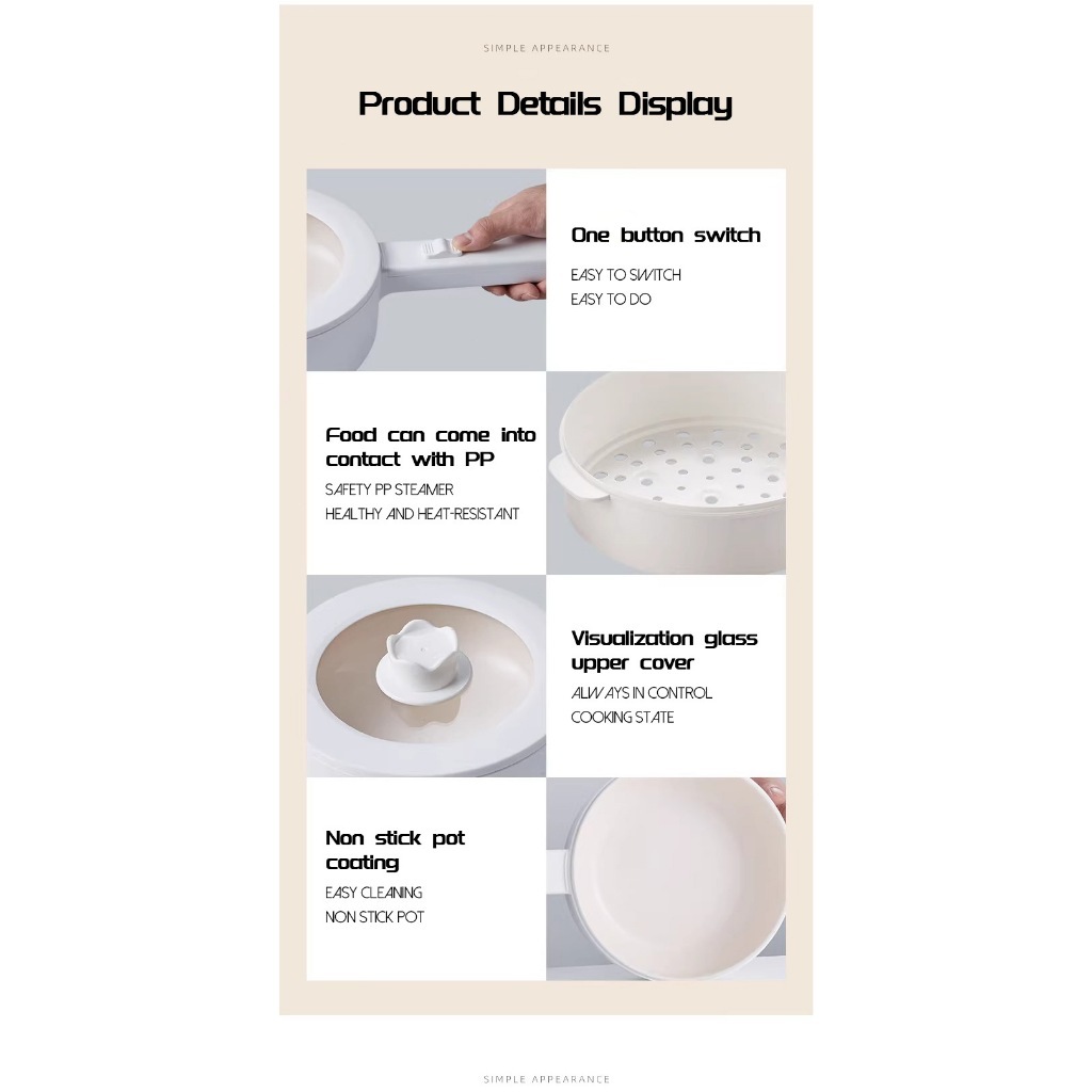 1.6L Non Stick Electric Steaming Pot Multi functional Integrated Double layer Ceramic Steaming Pot Non stick Pot