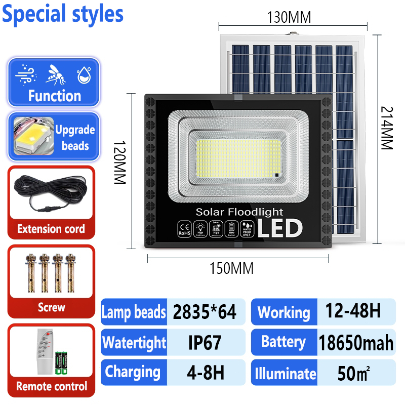 Solar Light Flood Lights Outdoor Waterproof IP67 Indoor Solar Led Lamp Street Light with cable