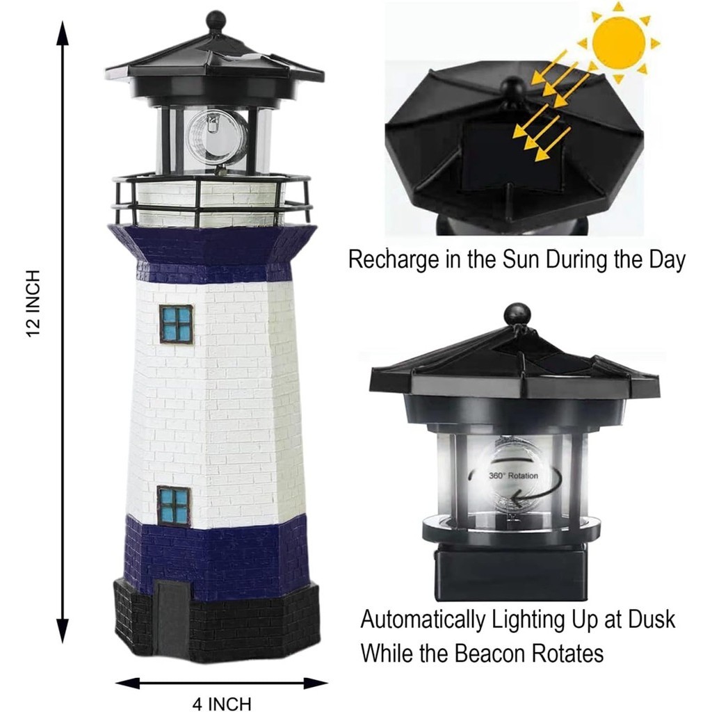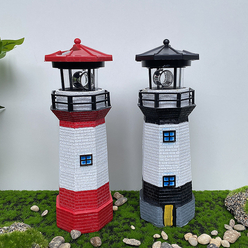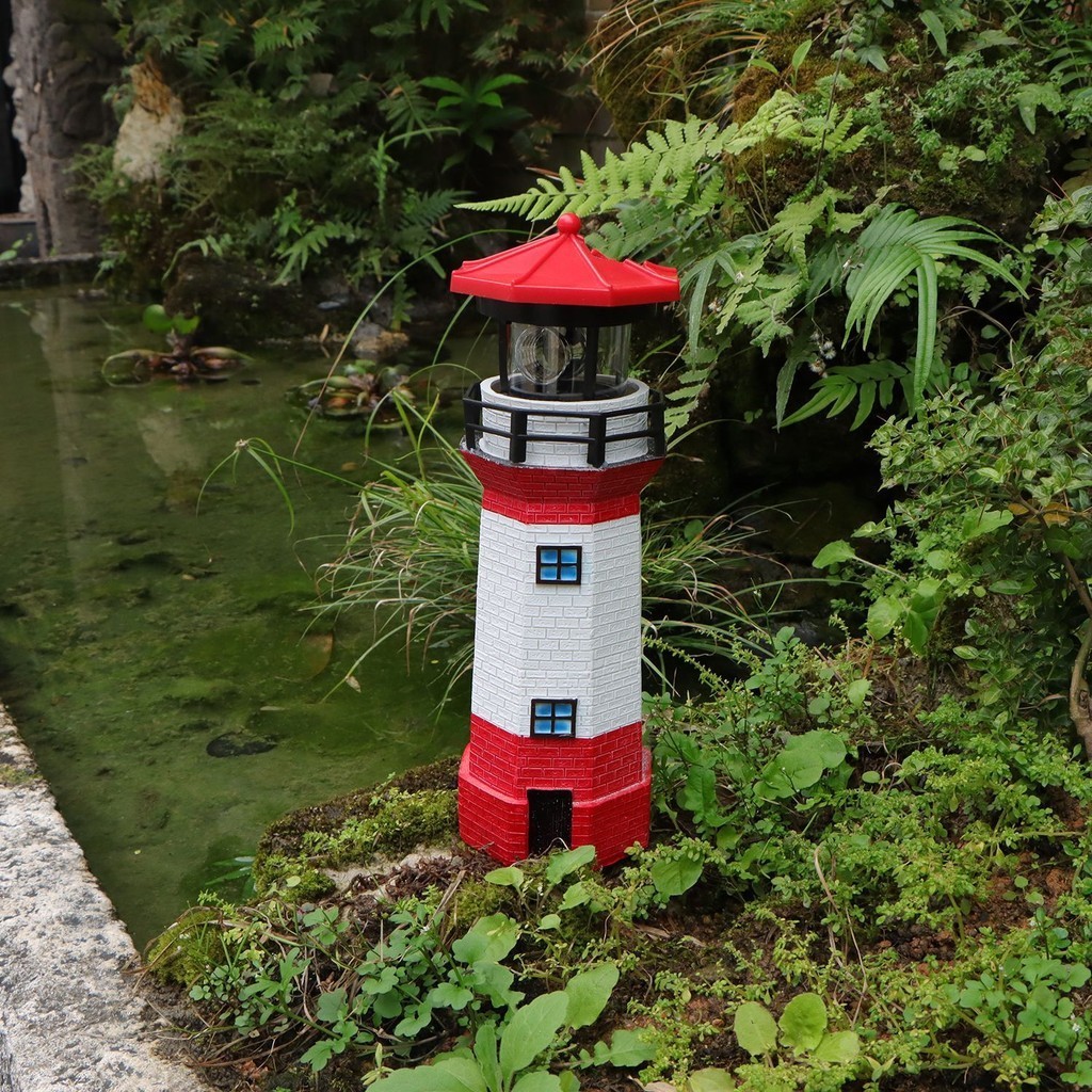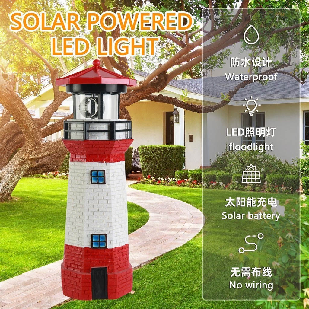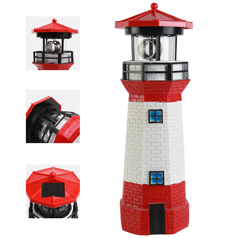Solar Lights Lighthouse with Rotating Beacon LED Lights Resin Solar Lighthouse Lamp Solar Light Outdoor Waterproof for Patio Well Cover Lawn Balcony Landscape Garden Decoration