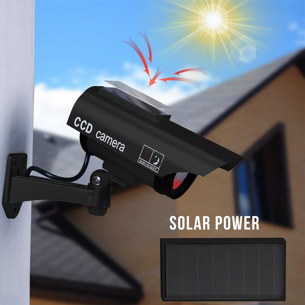 Solar Power Dummy Camera Security Waterproof Fake Camera Outdoor Indoor Bullet LED Red Light Monitor CCTV