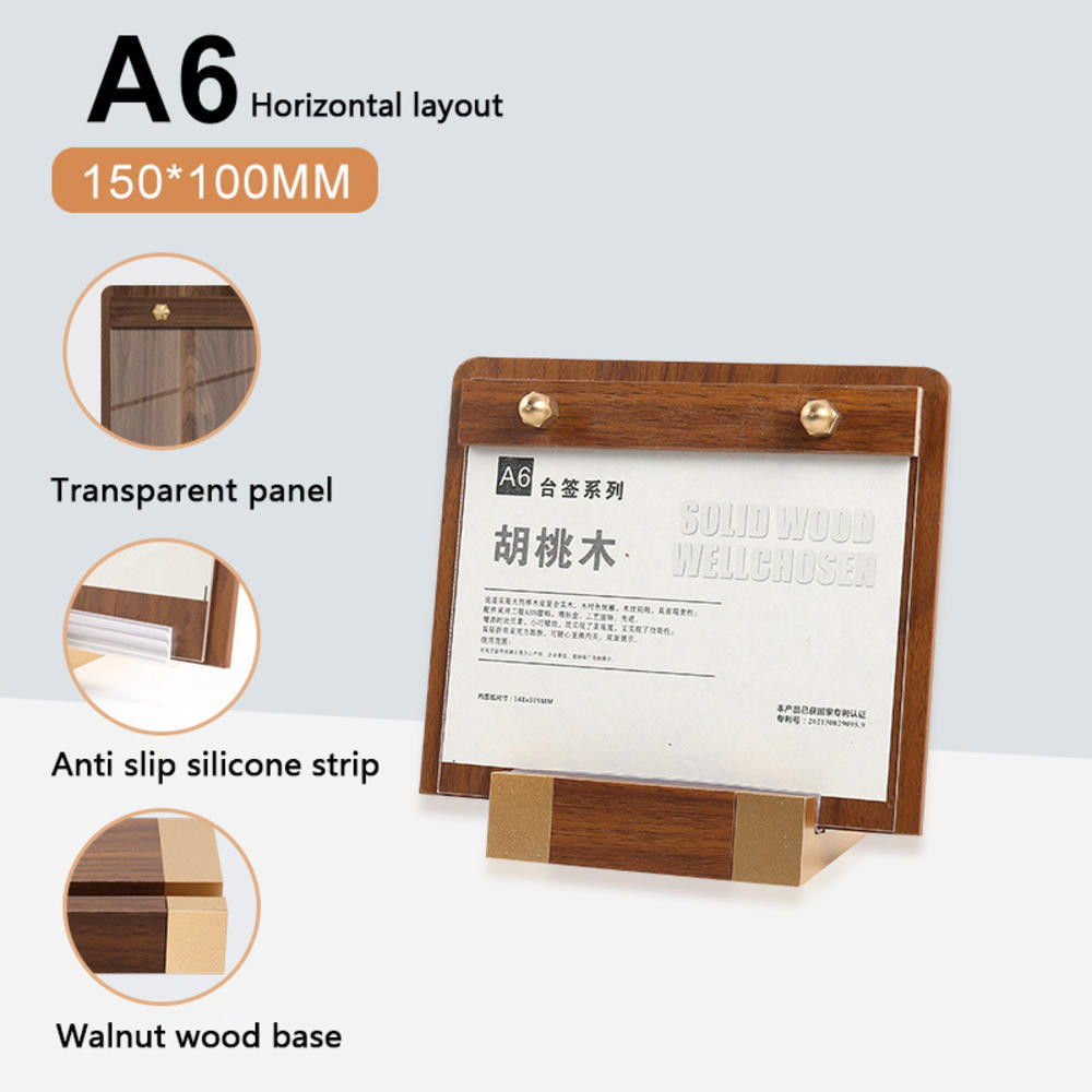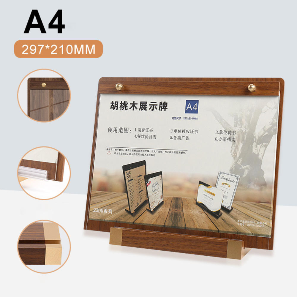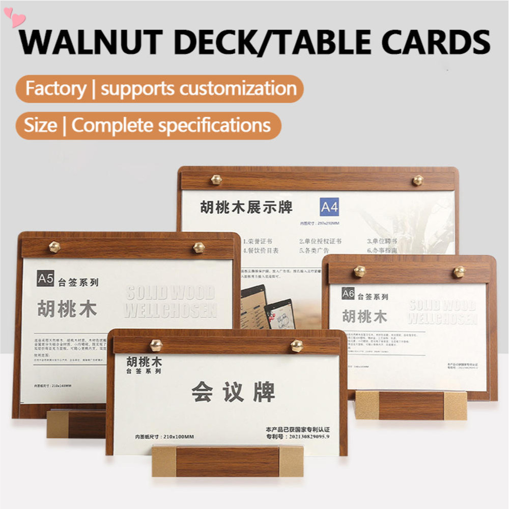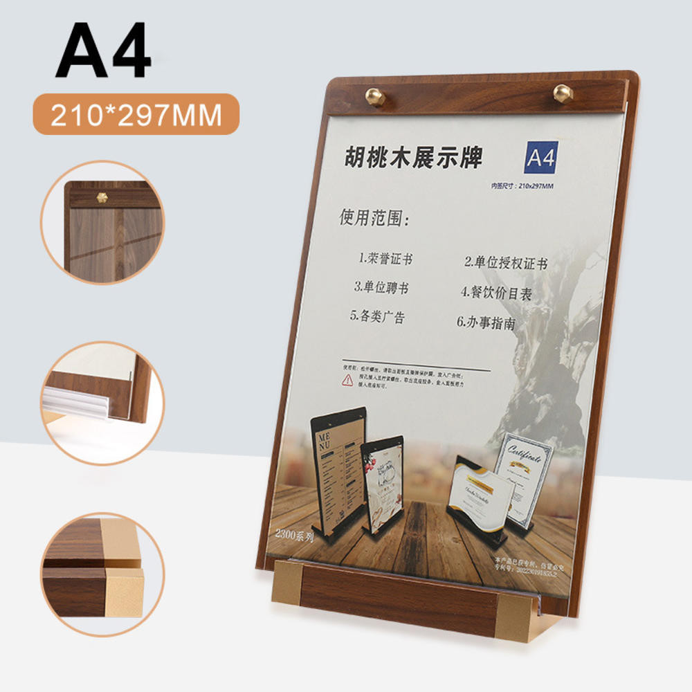 Solid Walnut Wood Menu Clipboard A4/A5/A6 Solid Wood Display Board High-grade Coffee Price List Menu Display Board