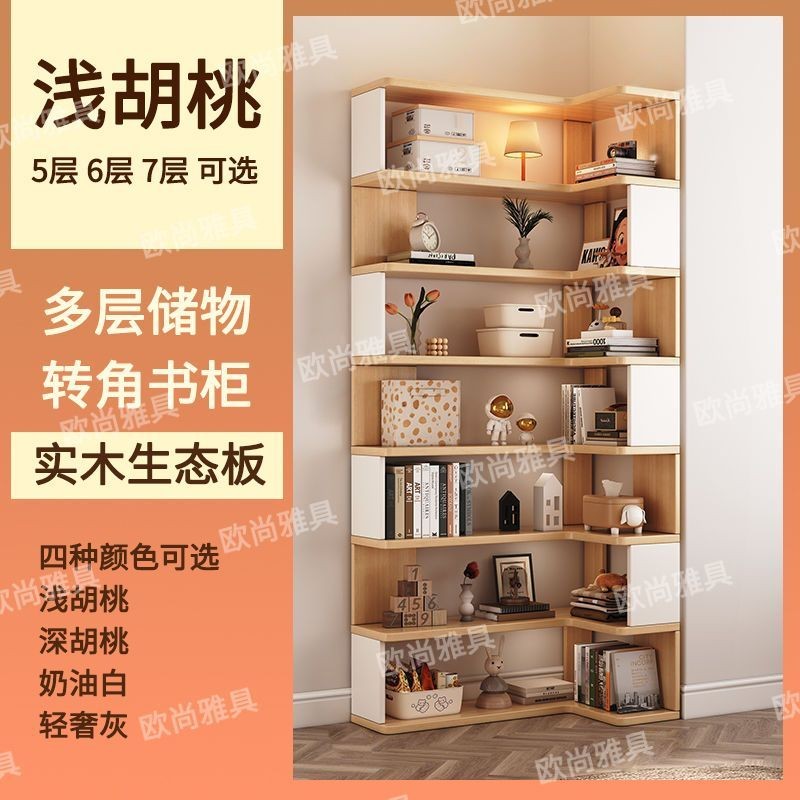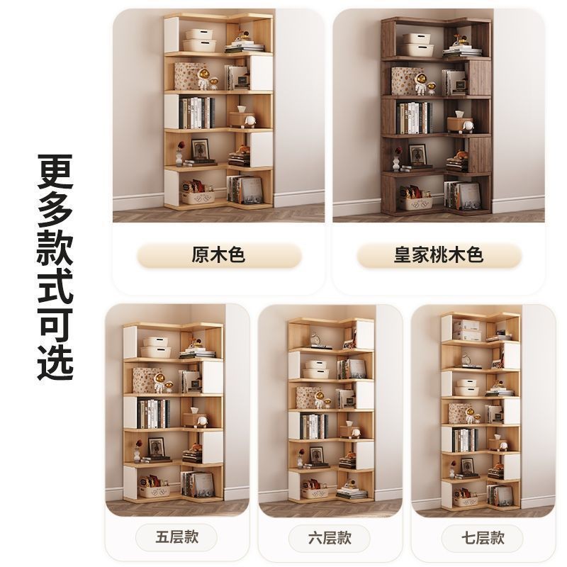 Solid Wood Bookshelf Solid Wood Storage Rack Floor Corner Cabinet Bookshelf Multi-layer Storage Cabinet Corner Bookcase