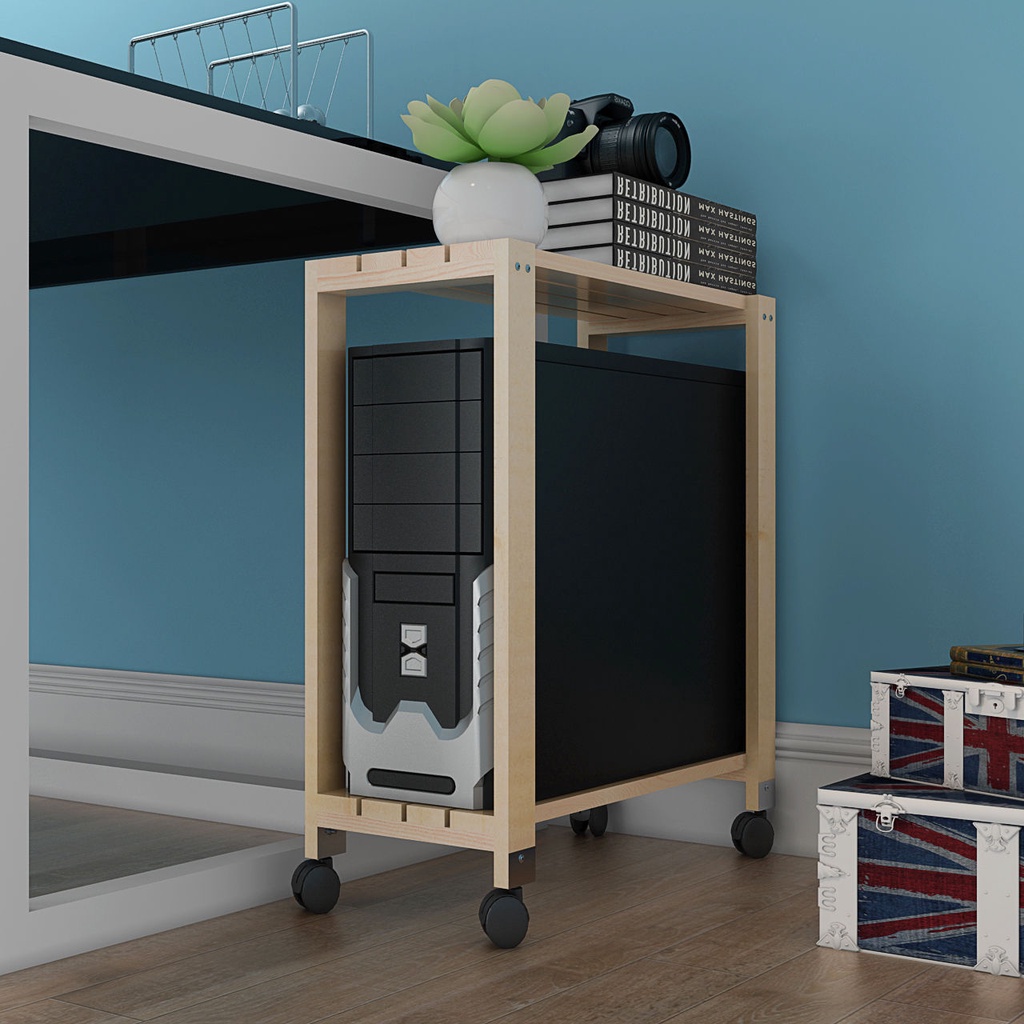 Solid Wood Double-Layer Computer Desktop Mainframe Bracket Removable Cooling Host Bracket Home Apparatus Box Rack Chassis Base-Main Frame Holder Base Mobile / Computer CPU Stand with Wheels
