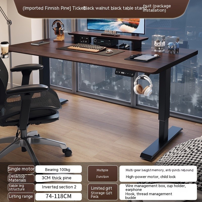 Solid Wood Electric Height Adjustable Table Intelligent Computer Desk Home Office Gaming Adjustable Desk
