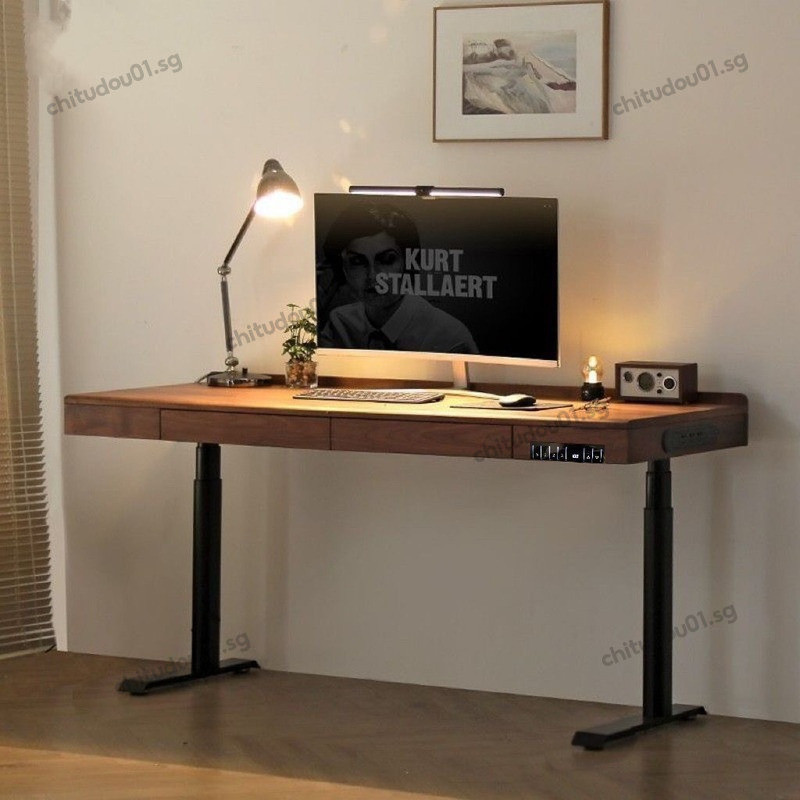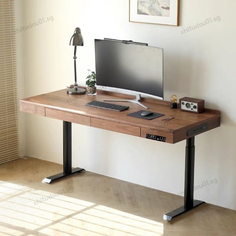 Solid Wood Gaming Desk With Adjustable Electric Office Desk Drawers Walnut Desk Luxury Office Table