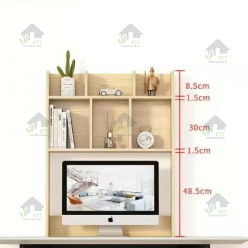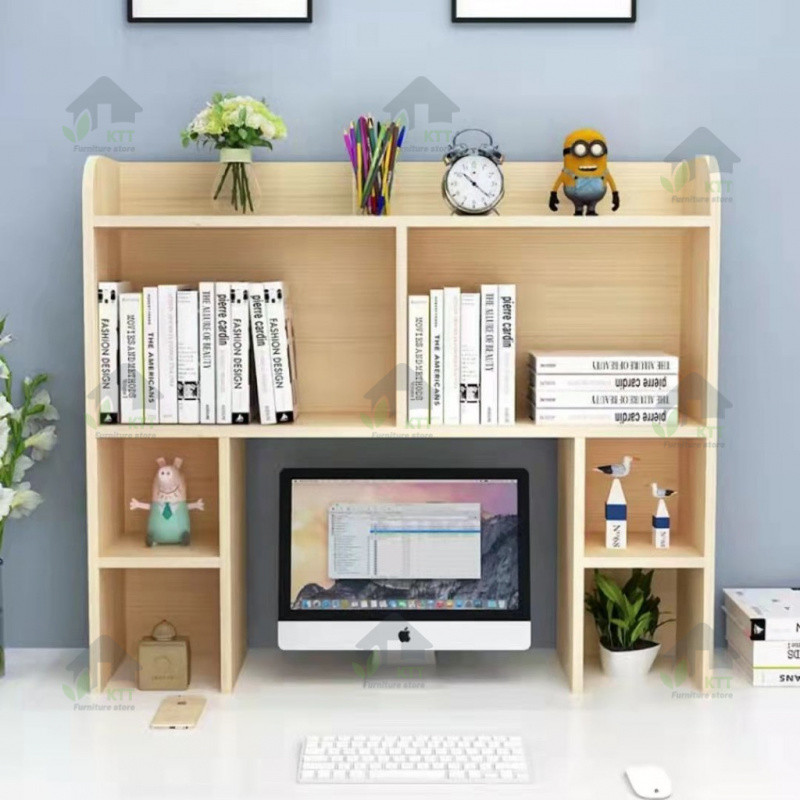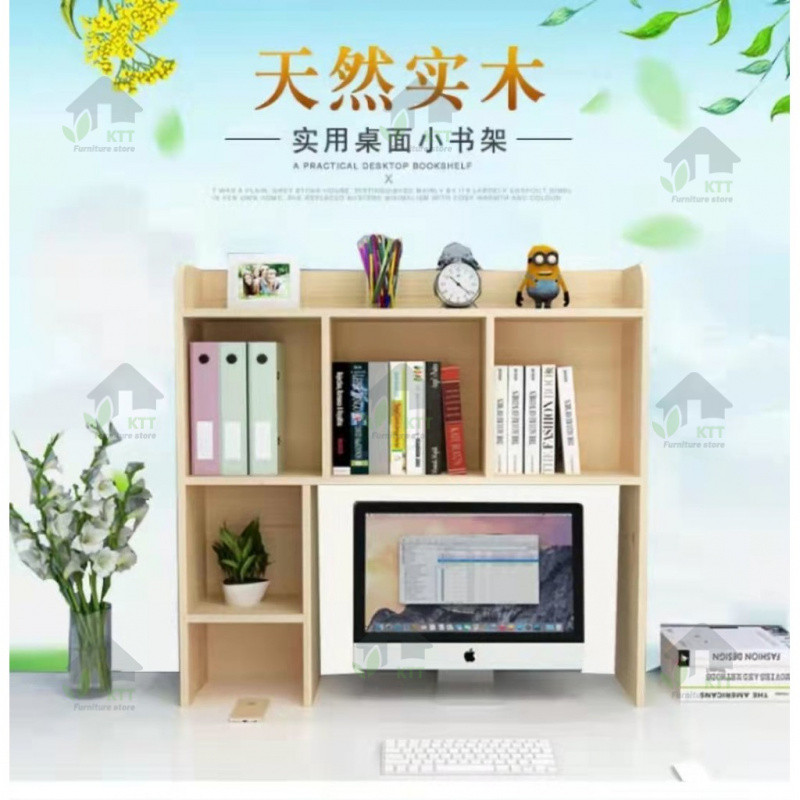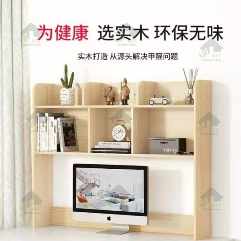 Solid Wood Pine Bookshelf Computer Desk Desktop Multi-Layer Study Office Shelf Bookcase Storage Bookcase on Desk