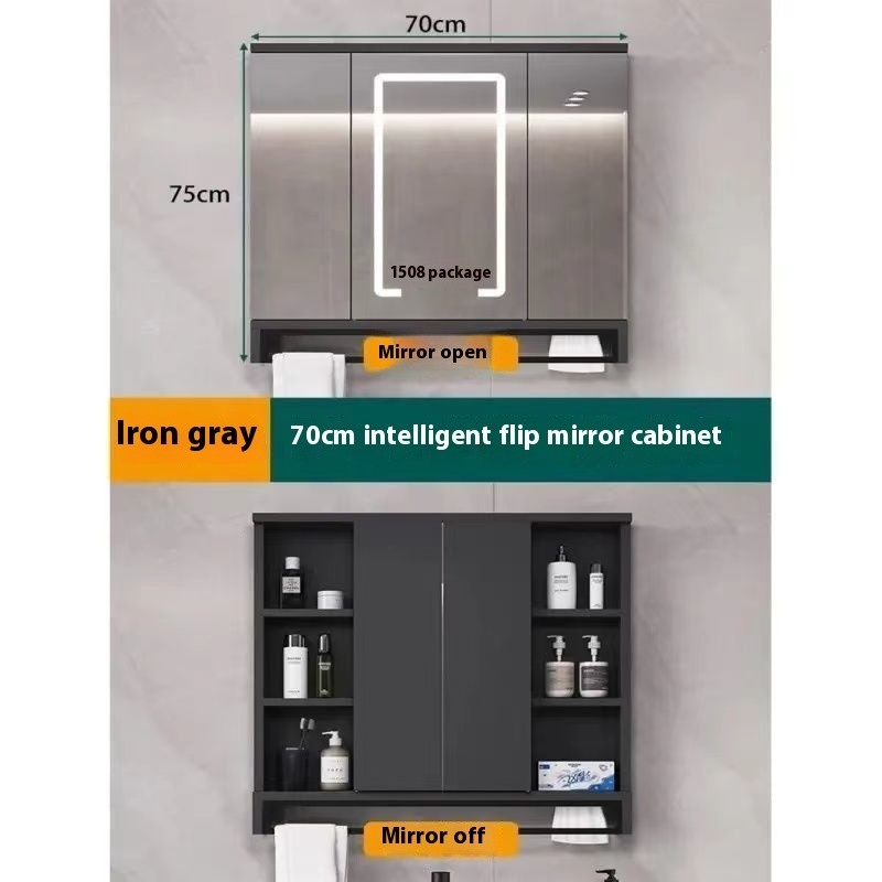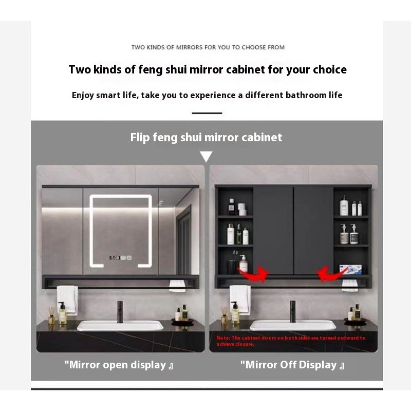 Solid Wood Smart Bathroom Mirror Hidden Folding Mirror Cabinet Wall-mounted Bathroom Mirror Storage Cabinet