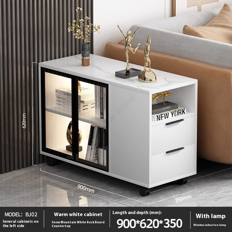 Solid Wood Sofa Side Cabinet Light Luxury Coffee Table Modern Tea Table Movable Corner Table