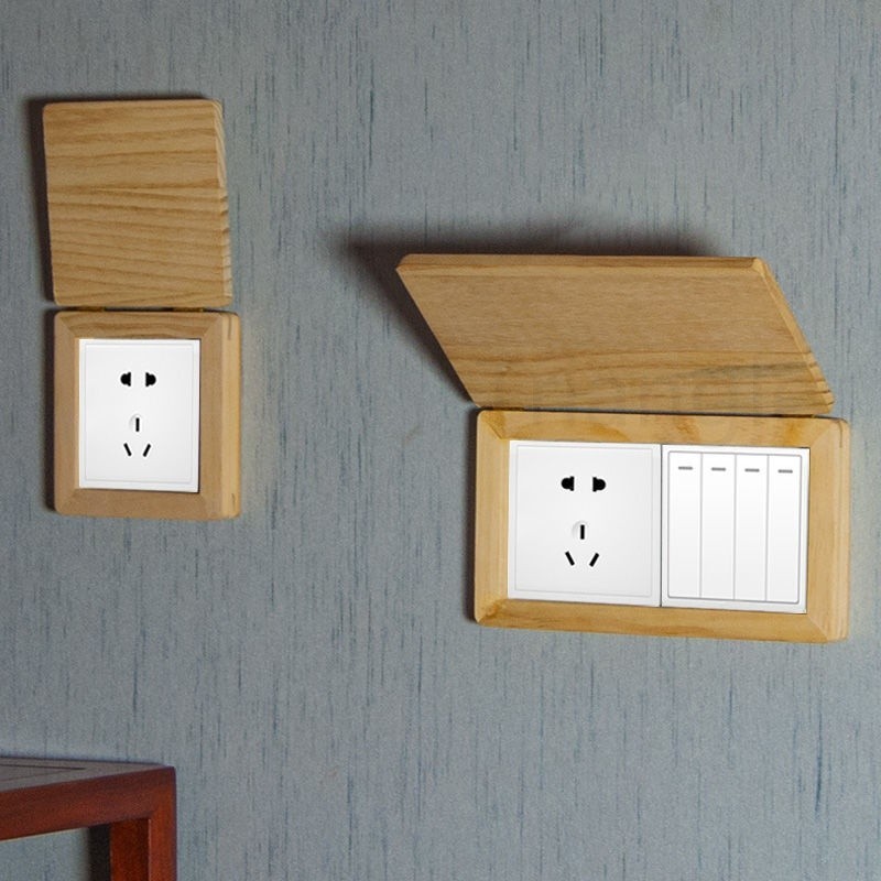 Solid Wood Switch Cover with Splash Guard - IP44 Rated Splash-Resistant Protector for Legrand/Hager Switches (Natural Finish, Non-Slip Base)
