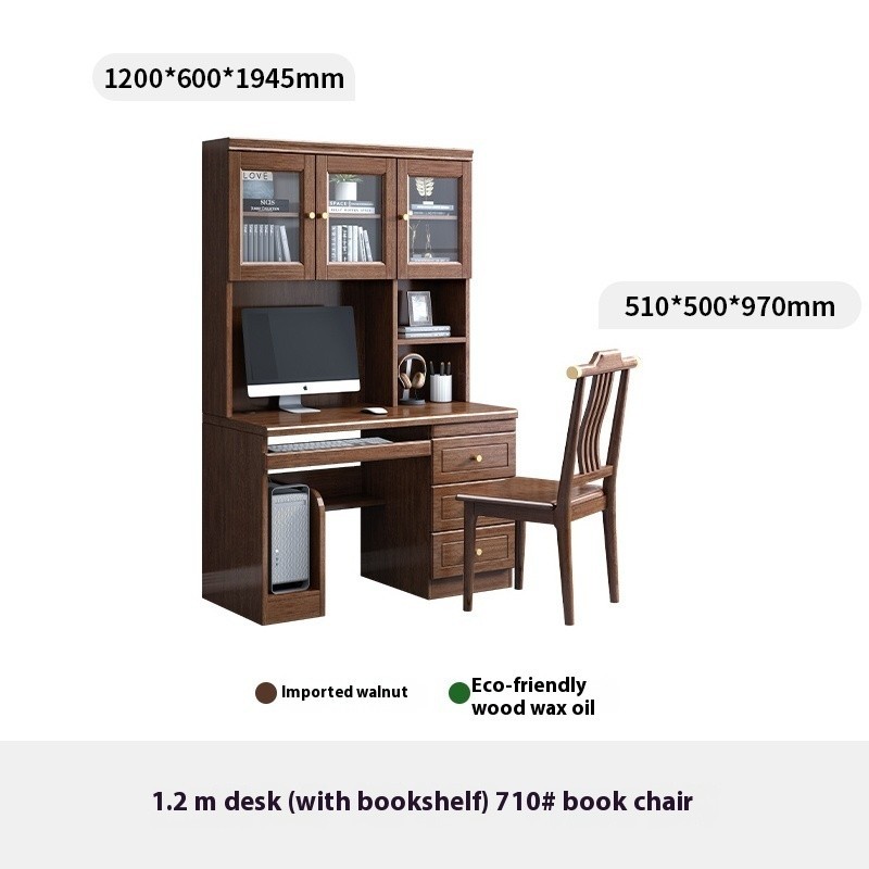 Solid Wood Table With Bookshelf Walnut Wood Table Computer Desk Study Desk Office Desk With Cabinet
