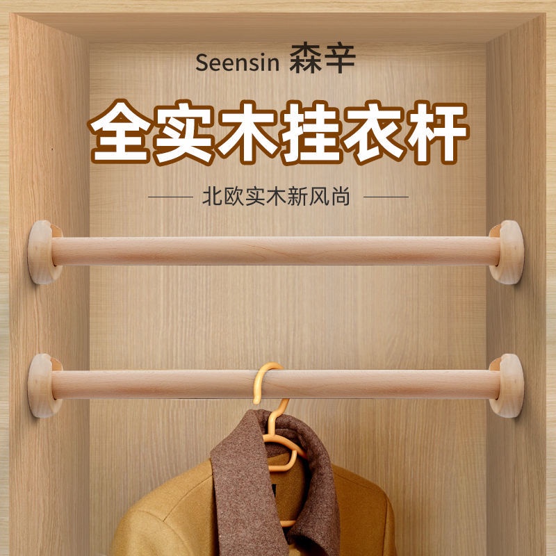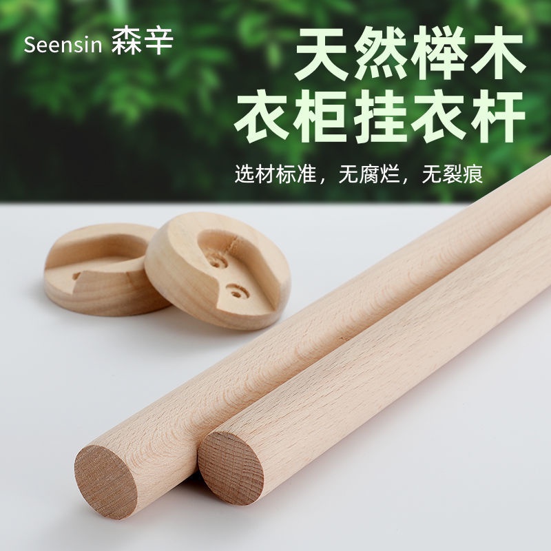 Solid Wood round Beech Clothes Pole of Closet Wardrobe Rod Solid Wood Clothes Hanger Cabinet Clothes Hanger Hanging Rod-Solid Wood Camphor Wardrobe Clothes Rail Seat Hang