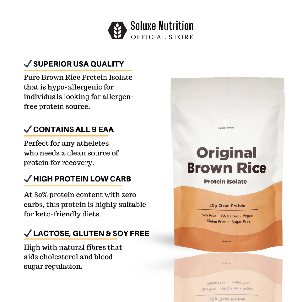 Soluxe Vegan Original Plant Based Brown Rice Protein Powder Shake Non-GMO 500g