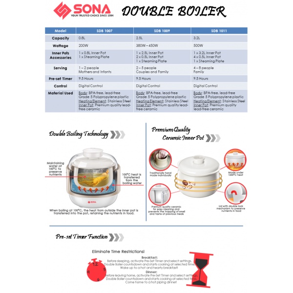 Sona Electric Steaming & Stewing Pot 2.5L - 3.0L SDB 1009 || SSC 1062