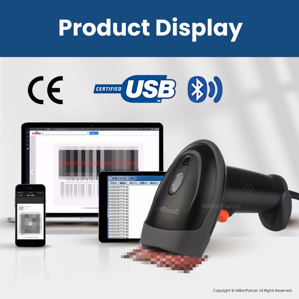 SoonMark Barcode Scanner 1D/2D | Wireless Bluetooth Scanner | Cashier Scanner | QR Code Scanner | POS Scanner Barcode