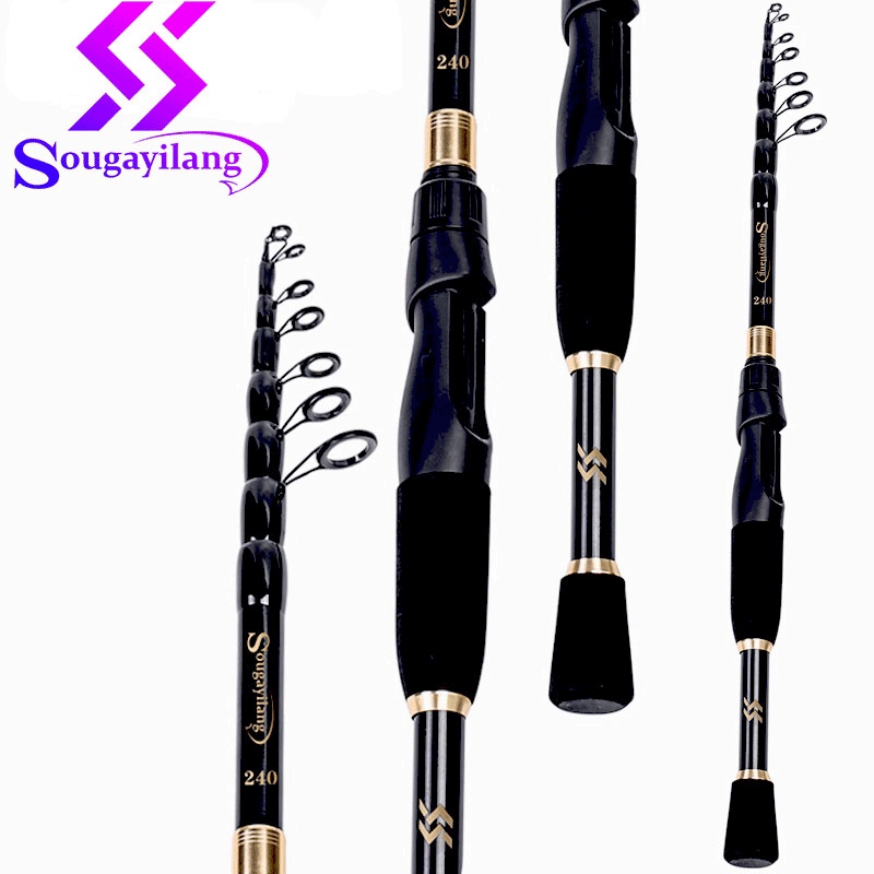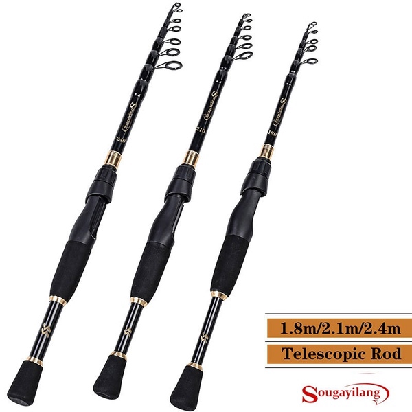 Sougayilang Short Telescopic Lure Fishing Rod Carbon Fiber 1.8/2.1/2.4M / Baitcasting Fishing Rod Fishing Carbon Fiber Trout Carp Telescopic Spinning Fishing Rod