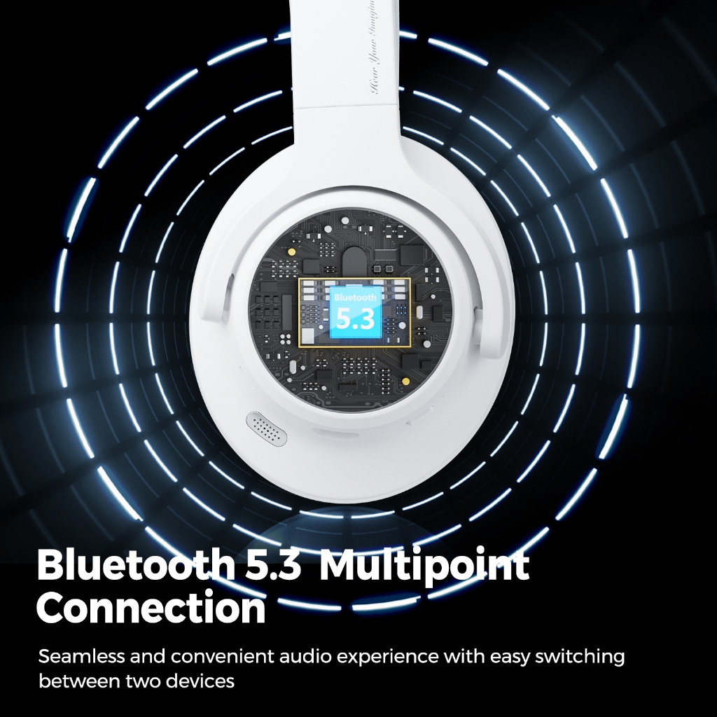 SoundPEATS Space Bluetooth 5.3 Headphones Hybrid Active Noise Cancelling Wireless Over-Ear Headphone Foldable Lightweight On-Ear Multipoint Connection with Microphone ANC