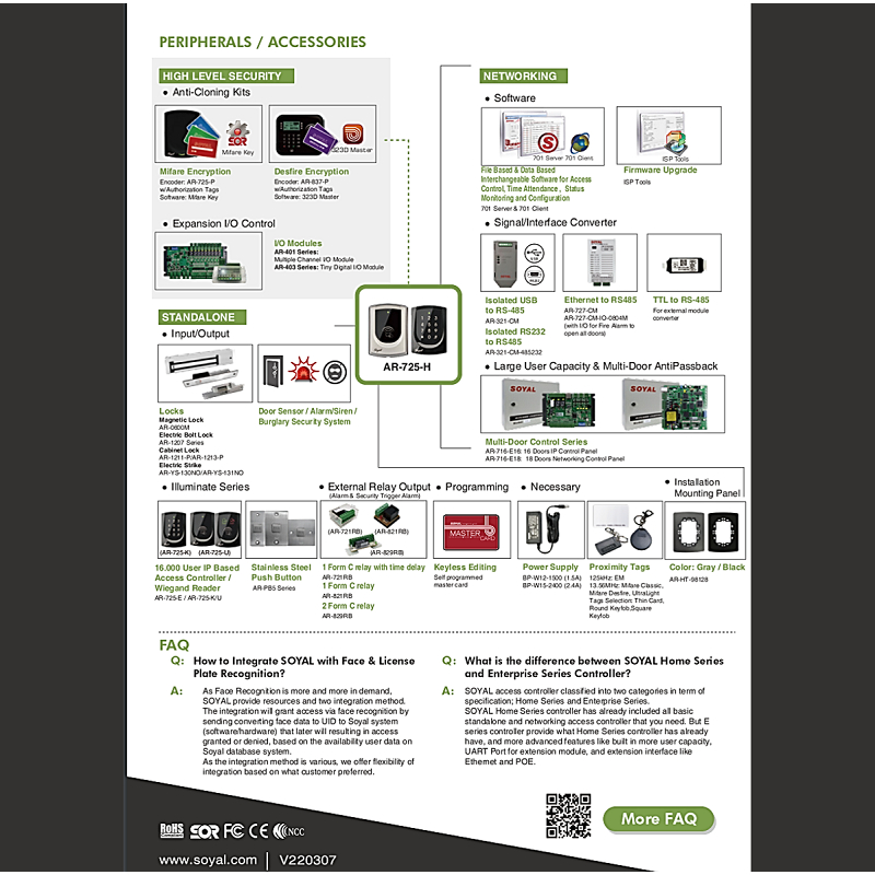 Soyal Access Control Door Access Touch Screen Reader Controller, AR-725HB (EM RFID CARD)